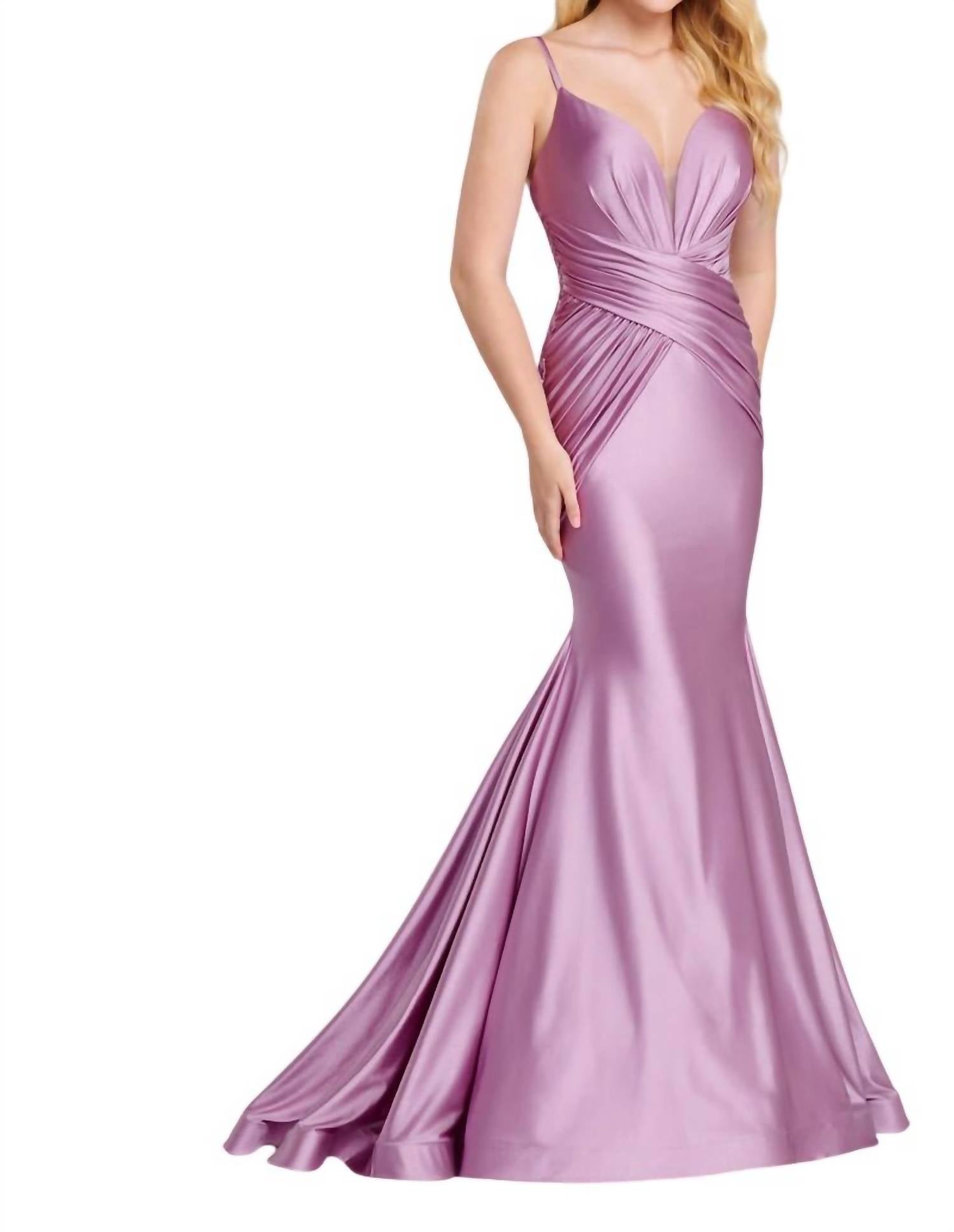 Looking for that perfect event dress? Look no further... Featuring a plunging V-neckline and a natural waist, the dress is elevated with a striking crisscross back detail and a daring high thigh slit. The circle skirt flows beautifully with a structured horsehair hem, adding dramatic movement and flair—perfect for any glamorous evening event.