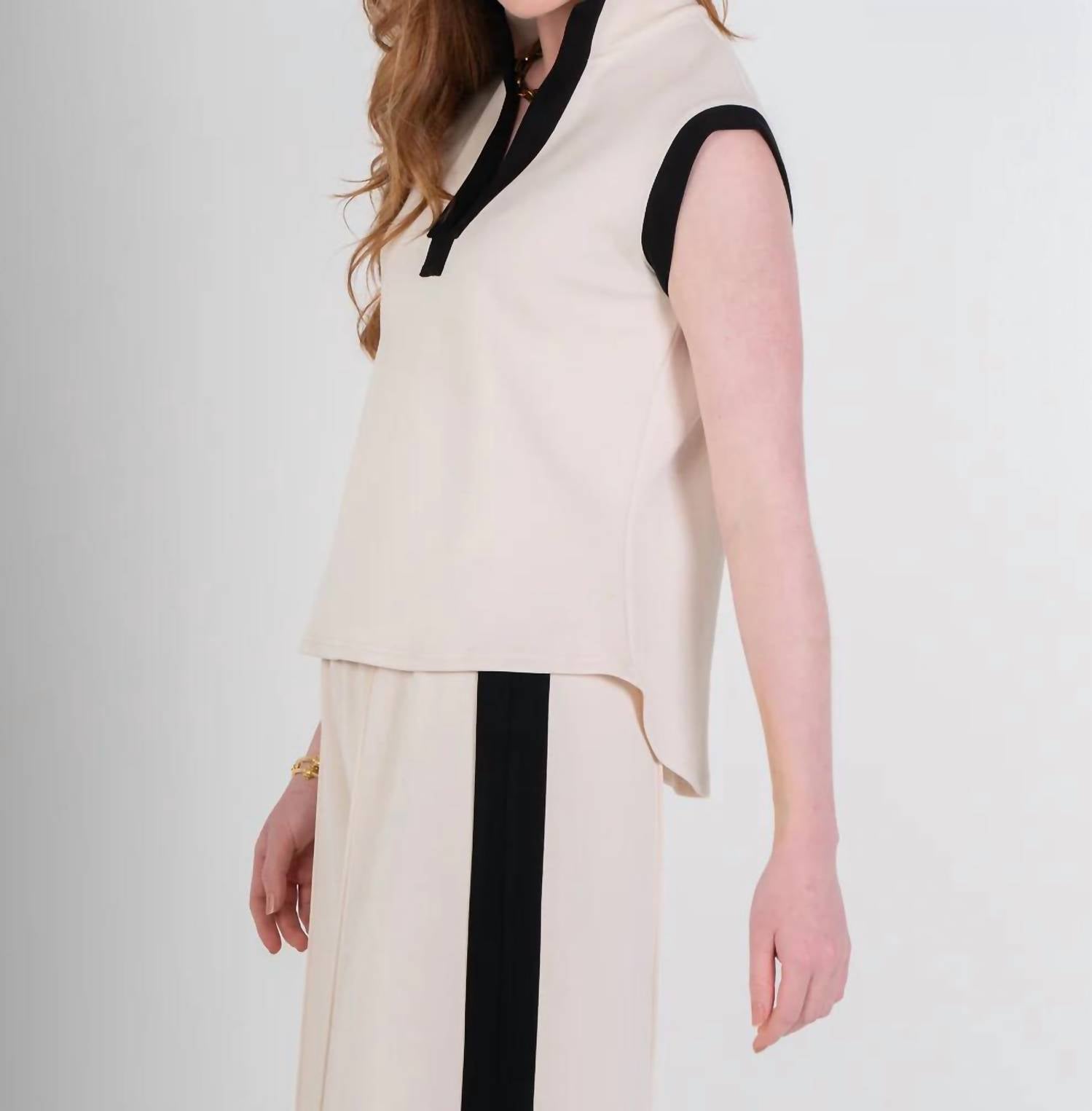 Sophisticated Black Sand, perfect for both work and play. Sleeveless tank features a stylish stand collar with a notched neckline for a touch of elegance. Crafted from a blend of 50% Viscose, 45% Polyester, and 5% Spandex. Promises comfort and a flattering fit. Pull on closure. Machine wash on a delicate cycle with cold water and gentle detergent, then hang dry to maintain color and shape. Ideal for fall travel and workwear.