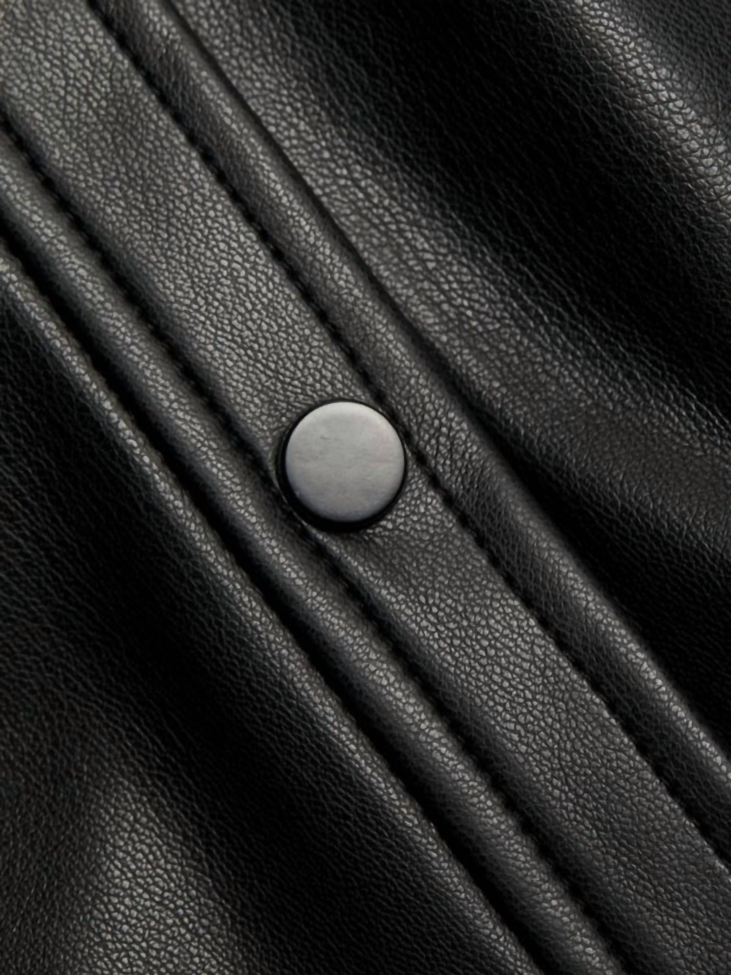 A long sleeve top you can wear with denim, skirts, well... just about anything! Features a fitted silhouette with shaping darts and puff sleeves. Point collar. Front button snap closures and rounded shirt tail hem. Long pleated balloon sleeves, button cuffs. Unlined. Faux leather fabric, 55% polyester/45% polyurethane. Imported.