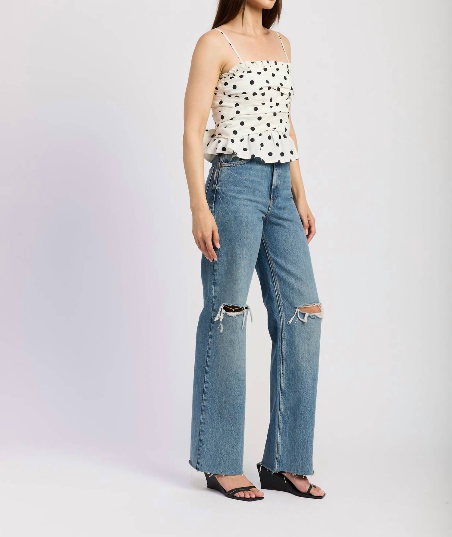 A timeless blouse that will never go out of style. Meet the Smocked Wrap Peplum Top by En Saison, a chic sleeveless piece adorned with a playful polka dot pattern, perfect for any cocktail party or special occasion. Crafted from quality polyester, this elegant blouse boasts a flattering squareneck and a stylish wrap design that complements the boho chic trend. It features a convenient pull-on closure, making it easy to wear. For care, simply hand wash and line dry to maintain its pristine look.