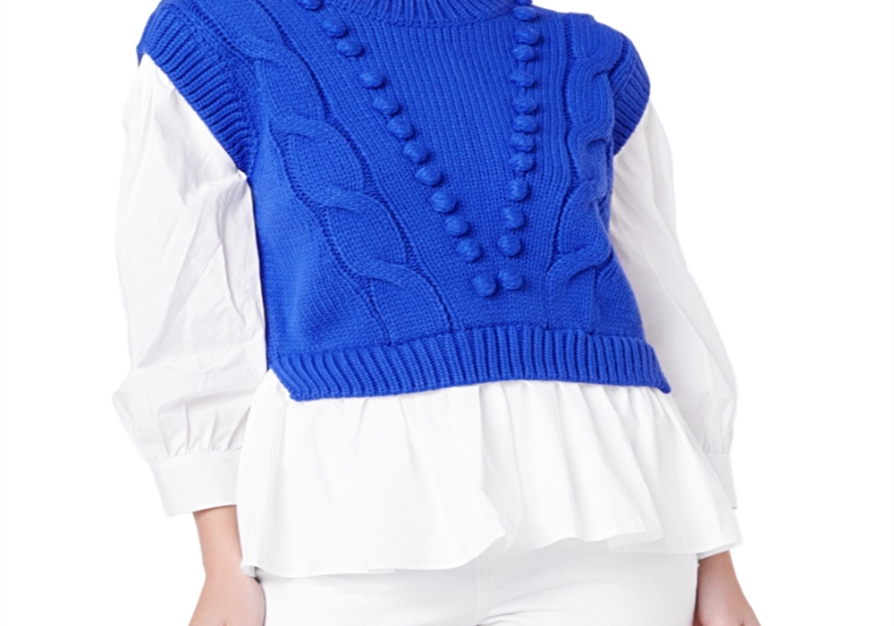 English Factory Cobalt Blue Cable Knit Vest Top Cobalt Blue