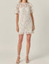 Step into sophisticated style with the Women's Camille Mini Dress by English Factory, a Boho Chic staple in timeless white. This shift dress offers short sleeves and a crewneck, featuring exquisite lace embroidery to add a touch of romance. The 100% polyester shell and lining ensure a comfortable fit, enhanced by a back invisible zipper and partially lined design for additional comfort. Perfect for a summer getaway or an elegant evening, this piece fits seamlessly into your wardrobe essentials. Model is wearing a size small (5'10" height, 33" bust, 25.5" waist, 35" hips).