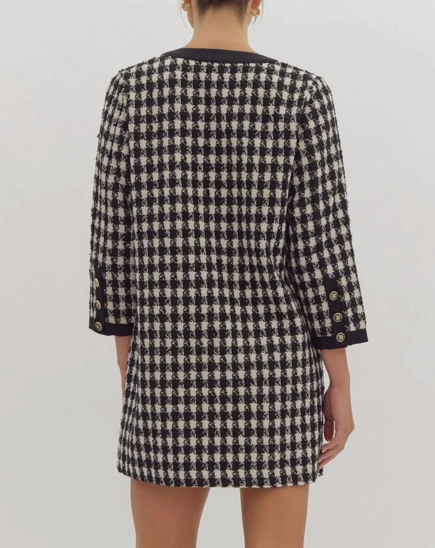 The Audrey V-neck Button Up Dress by Entro is a chic mini dress crafted for women in a playful plaid and check pattern. Featuring three-quarter sleeves and made from lightweight polyester, it's perfect for any occasion, whether it's a holiday party or a casual summer workwear look. With convenient pockets and a button closure, this dress ensures both style and functionality with its elegant kaftan silhouette. For care, machine wash and line dry are recommended. It is made of 90% Polyester, 10% Wool.