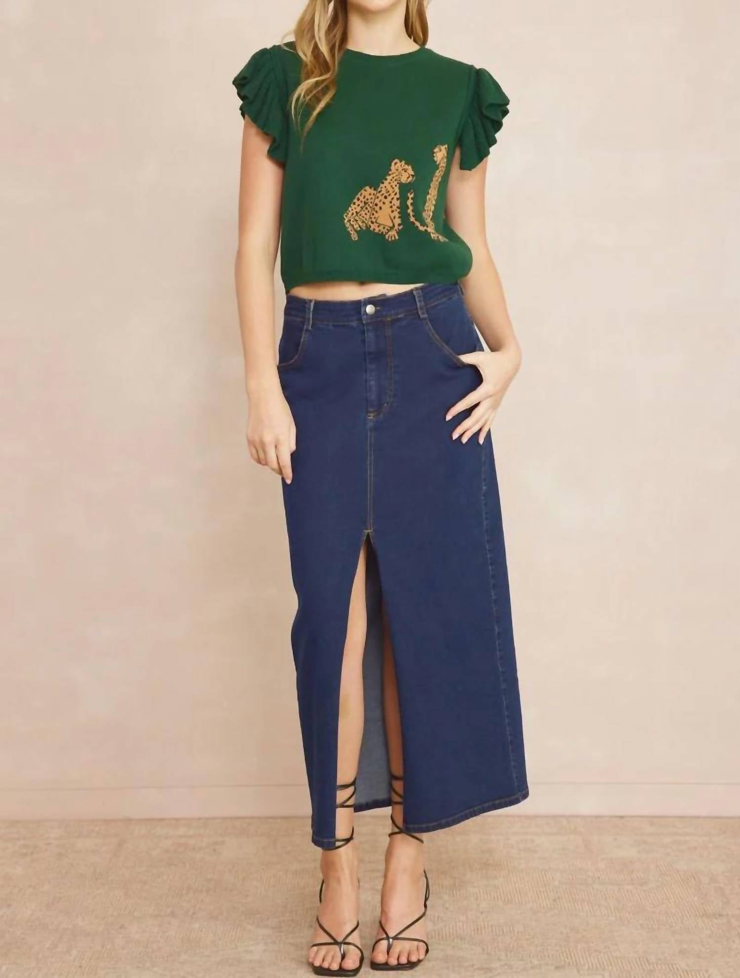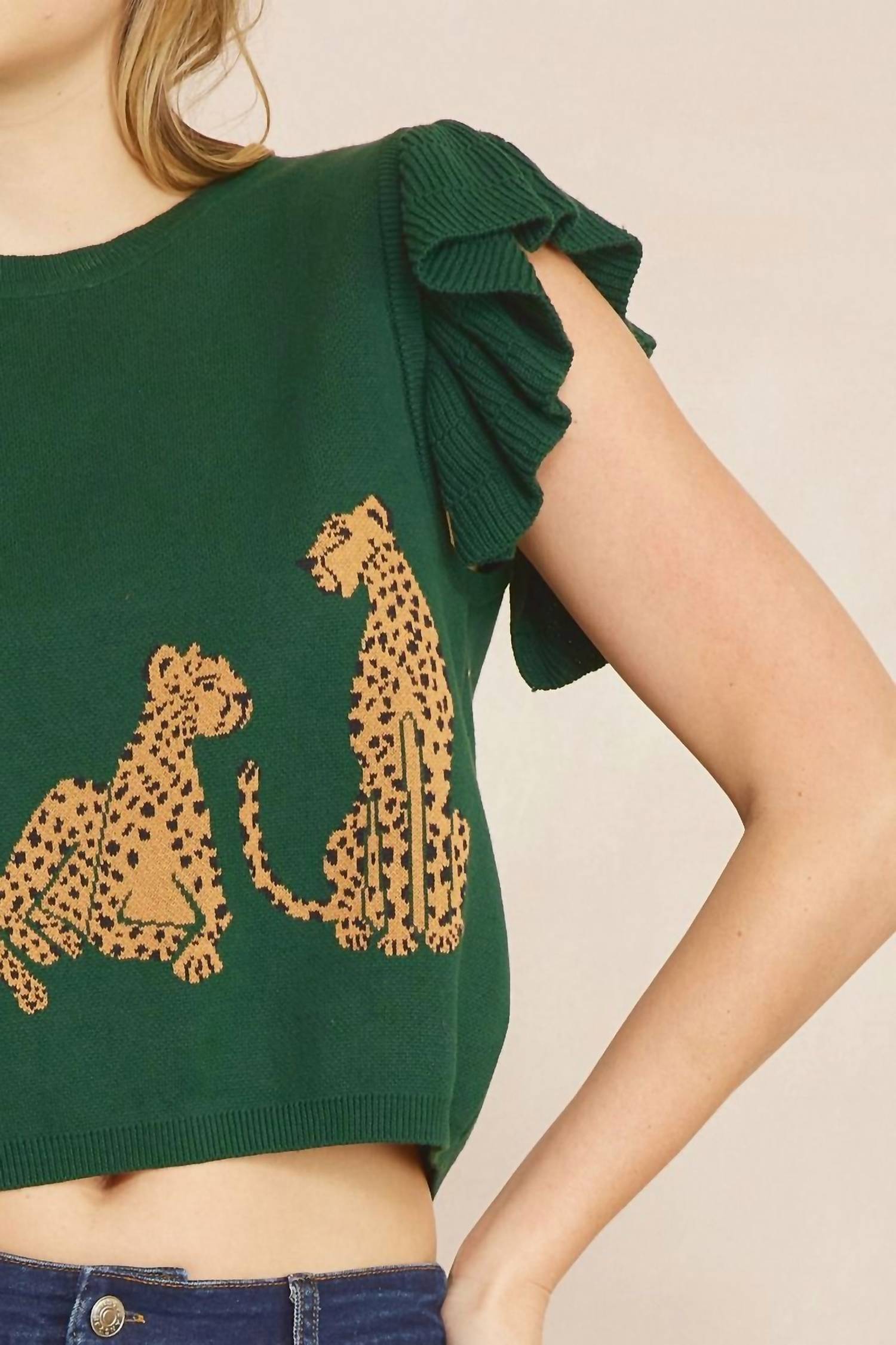 Stay warm and stylish in this versatile and effortlessly cool knitwear staple. Wear it alone or layered, it's the perfect sweater for the season and you'll wish you had it in every color. Introducing the Cheetah Ruffle Sweater by Entro, a stunning choice for any evening event this fall. This women's sweater features cap sleeves with ruffle detail, enhancing its animal pattern that makes a bold statement. Crafted for lightweight comfort, it offers a pull-on closure and a classic crewneck design, perfect for layering. Care for this vintage-inspired piece by hand washing and line drying to preserve its exquisite charm.