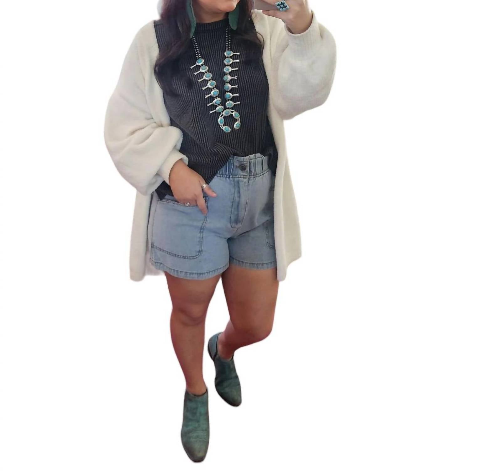 Fit to perfection, we love these high-waist shorts and you will too.These Denim Shorts feature a high-waist cut for a true-to-size fit. The textured pattern adds subtle flair, while the button closure and pockets provide practicality. Crafted from durable denim, they are perfect for pairing with your favorite tops for an effortlessly chic look.