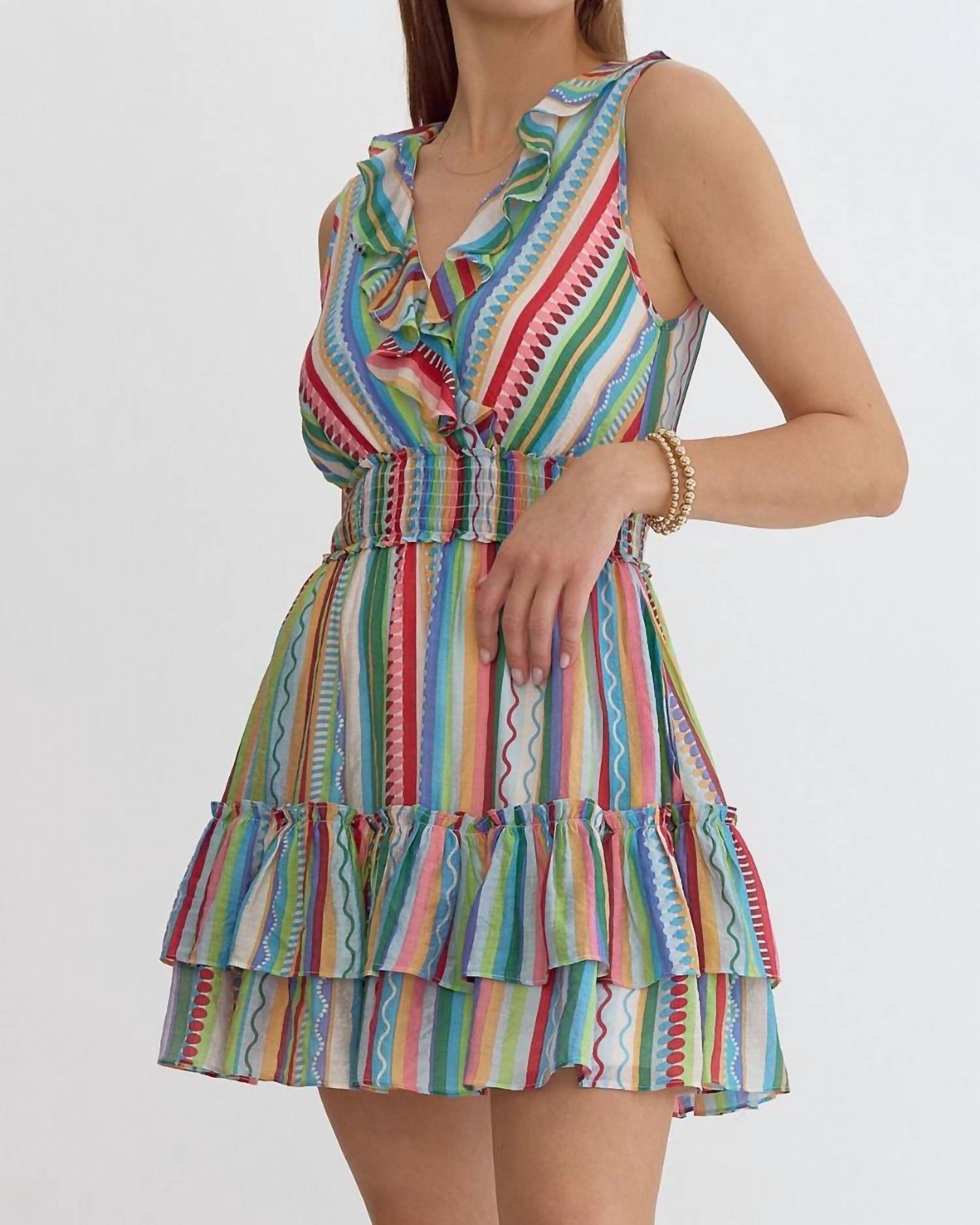 Entro - Fiesta Stripe Sleeveless Ruffle Dress