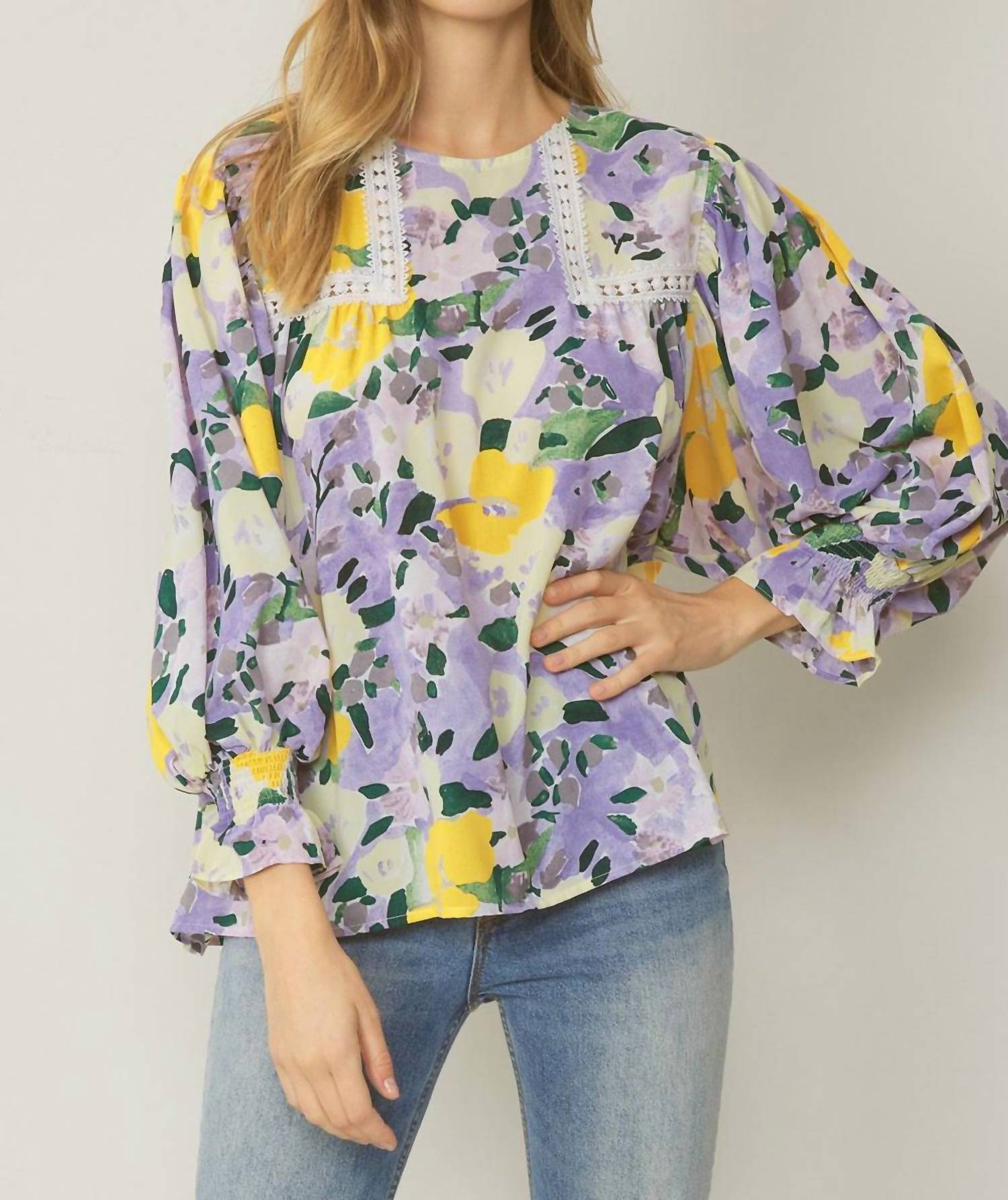 Entro - Floral Crochet Trim Blouse