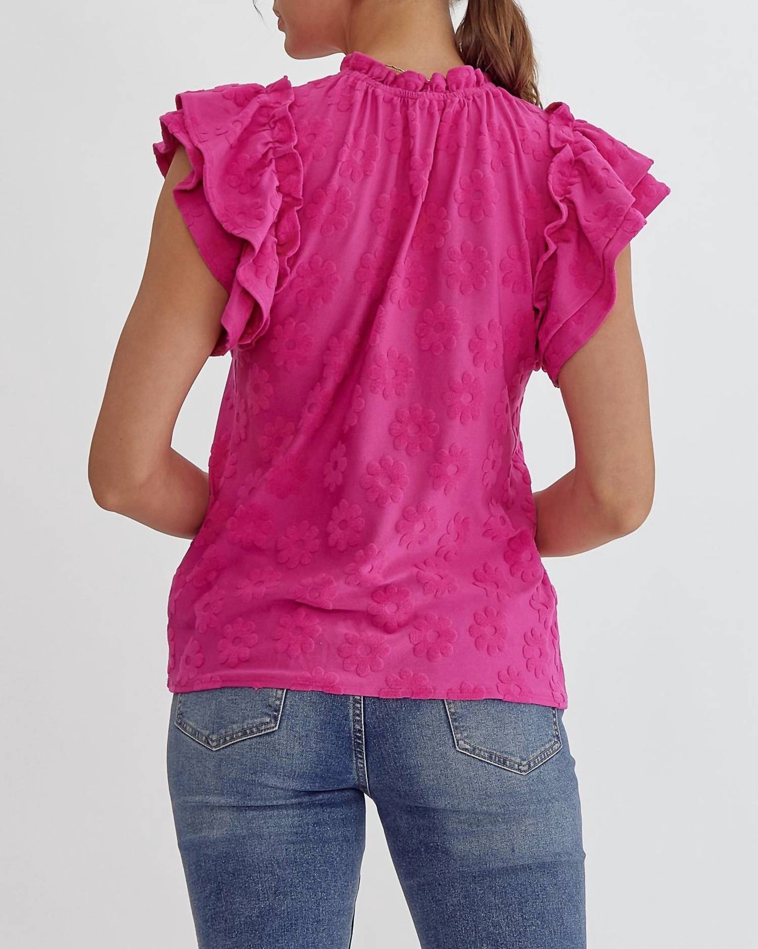 A timeless blouse that will never go out of style.Ruffle detail at shoulders. Elasticized at neck. Unlined. Kint. Non-sheer. Lightweight. 95%POLYESTER 5%SPANDEX.