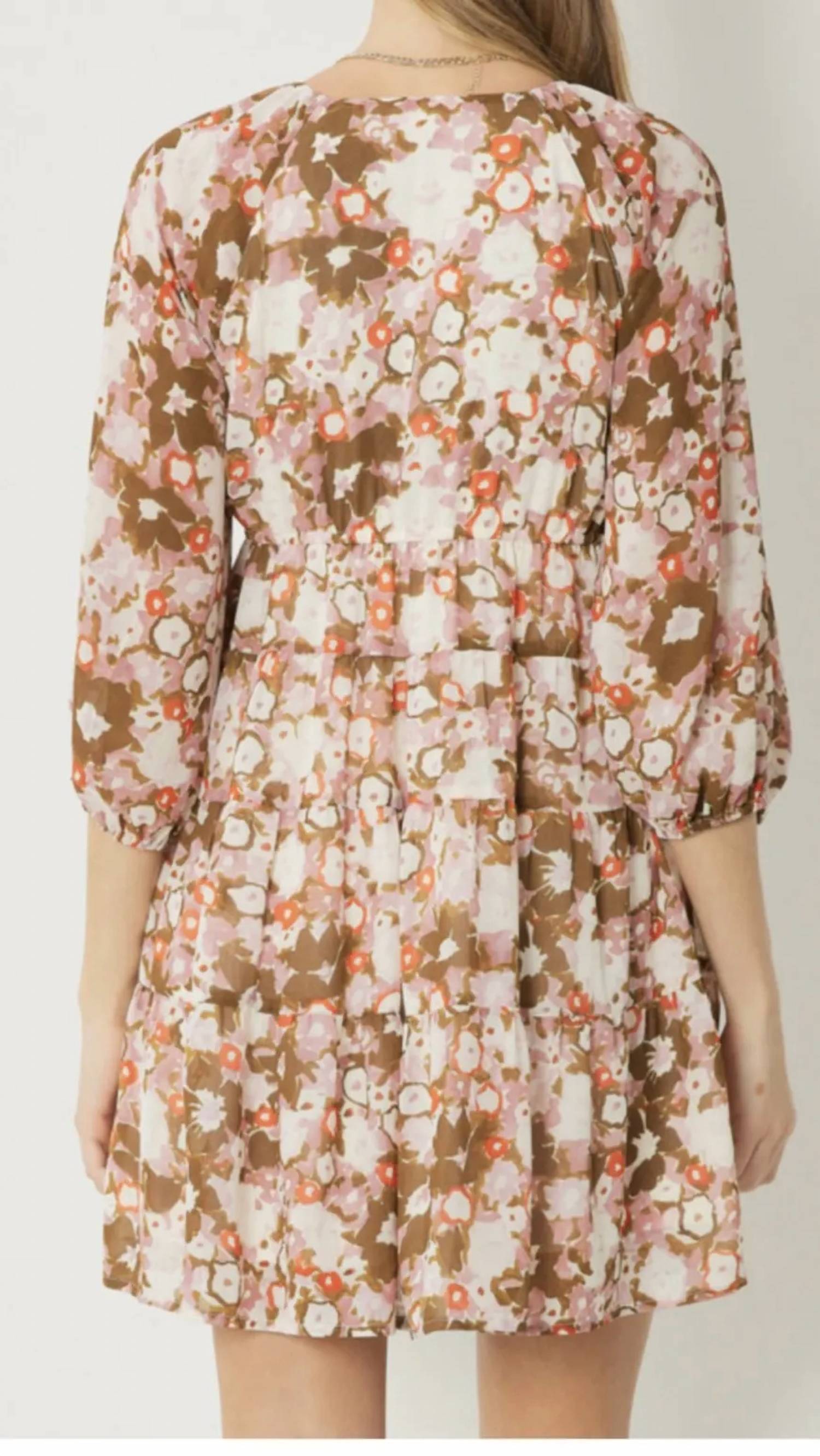 A short and breezy dress for those warmer days. Introducing the Floral Print V-neck Dress by Entro, a perfect choice for a summer vacation with its boho chic appeal. This mini dress features charming three-quarter sleeves with elastic openings and an empire waist silhouette. The dress is crafted in a delightful mauve mocha floral print and is lined for comfort, making it a stylish and practical choice. Closure: Side zipper. Care: Hand wash, line dry.
