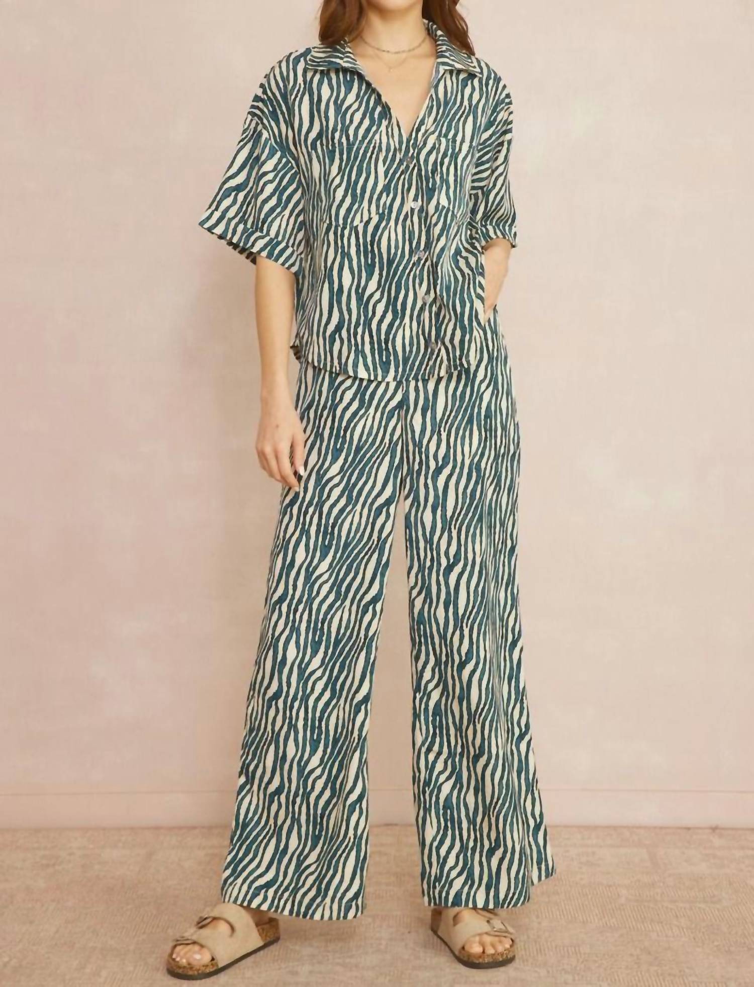 Print high waisted wide leg pants featuring pockets at side. Zipper front closure. Lined. Woven. Non-sheer. Lightweight. 100% poly.