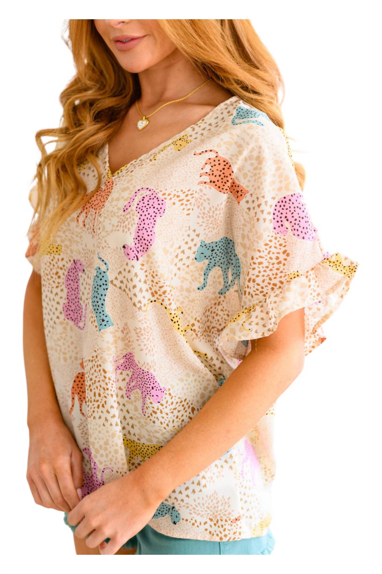 Pair this with your favorite jeans and slides for your next girls night out.Woven Fabric. Dolman Ruffle Sleeve. Relaxed Silhouette. 100% Polyester. True to Size.