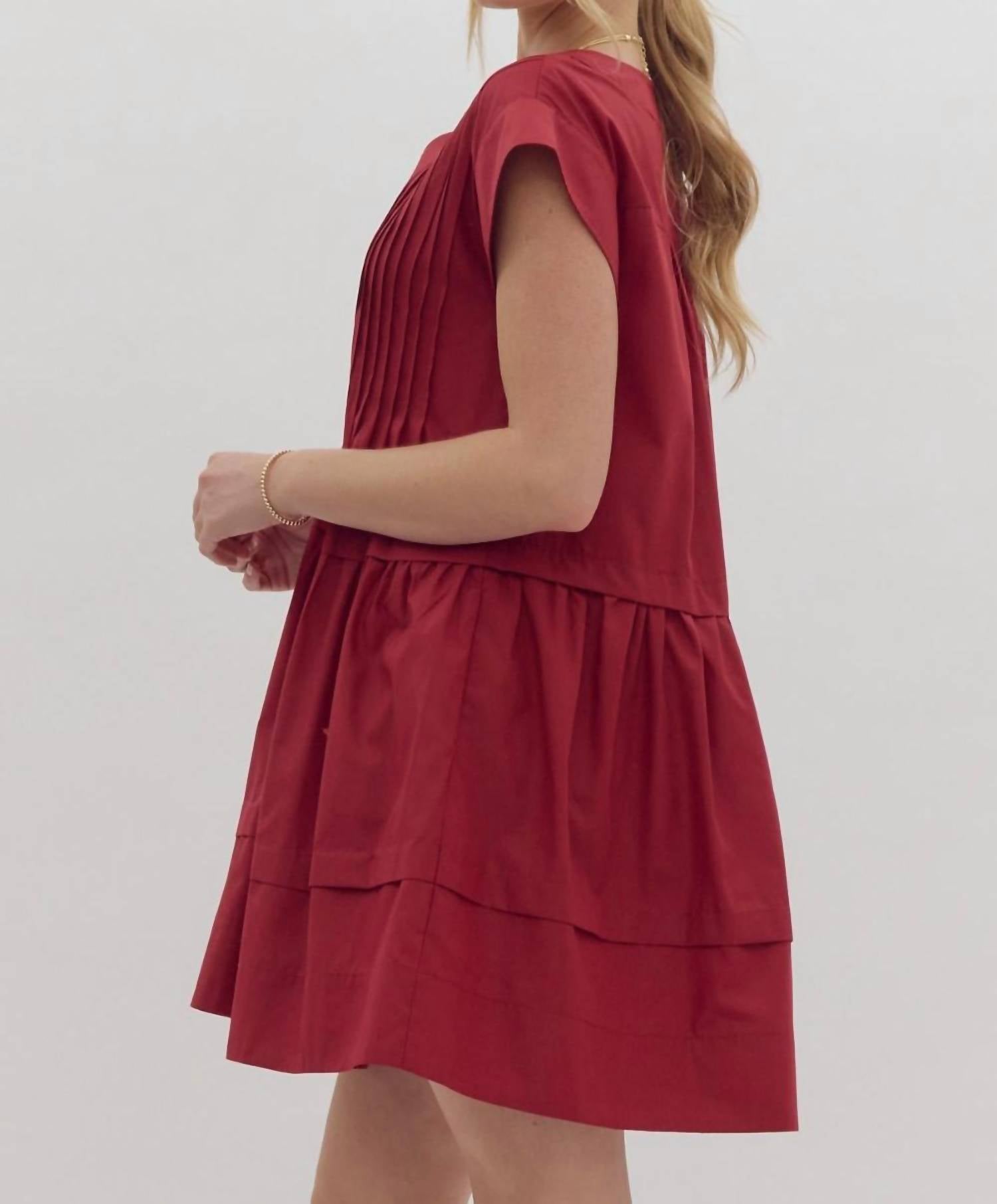 The perfect mini dress for those warmer months. A striking crimson hue. This women's mini dress features a flattering A-line silhouette with cap sleeves and a stylish V-neckline. Crafted from smooth polyester, it offers a comfortable pull-on closure. Care instructions advise line drying and recommend not washing the garment, ensuring longevity.