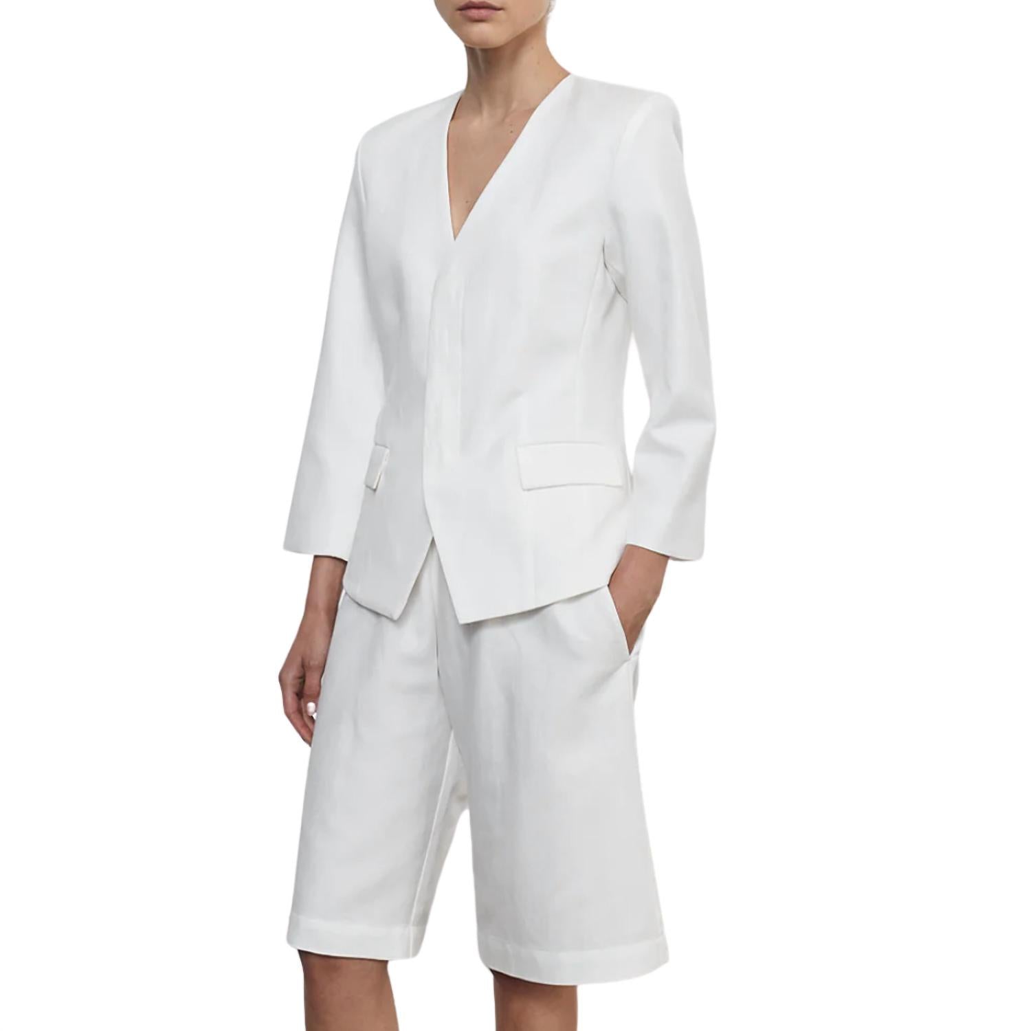 These Bermuda shorts feature a comfortable pull-on design, on-seam side pockets, and sit just above the knee. Composition: 48% Tencel Lyocell, 30% Linen, 22% Cotton with a 100% Cupro lining. Made in the USA, these shorts have a rise of 12.5 inches and an inseam of 11 inches. Machine wash cold for long-lasting wear.