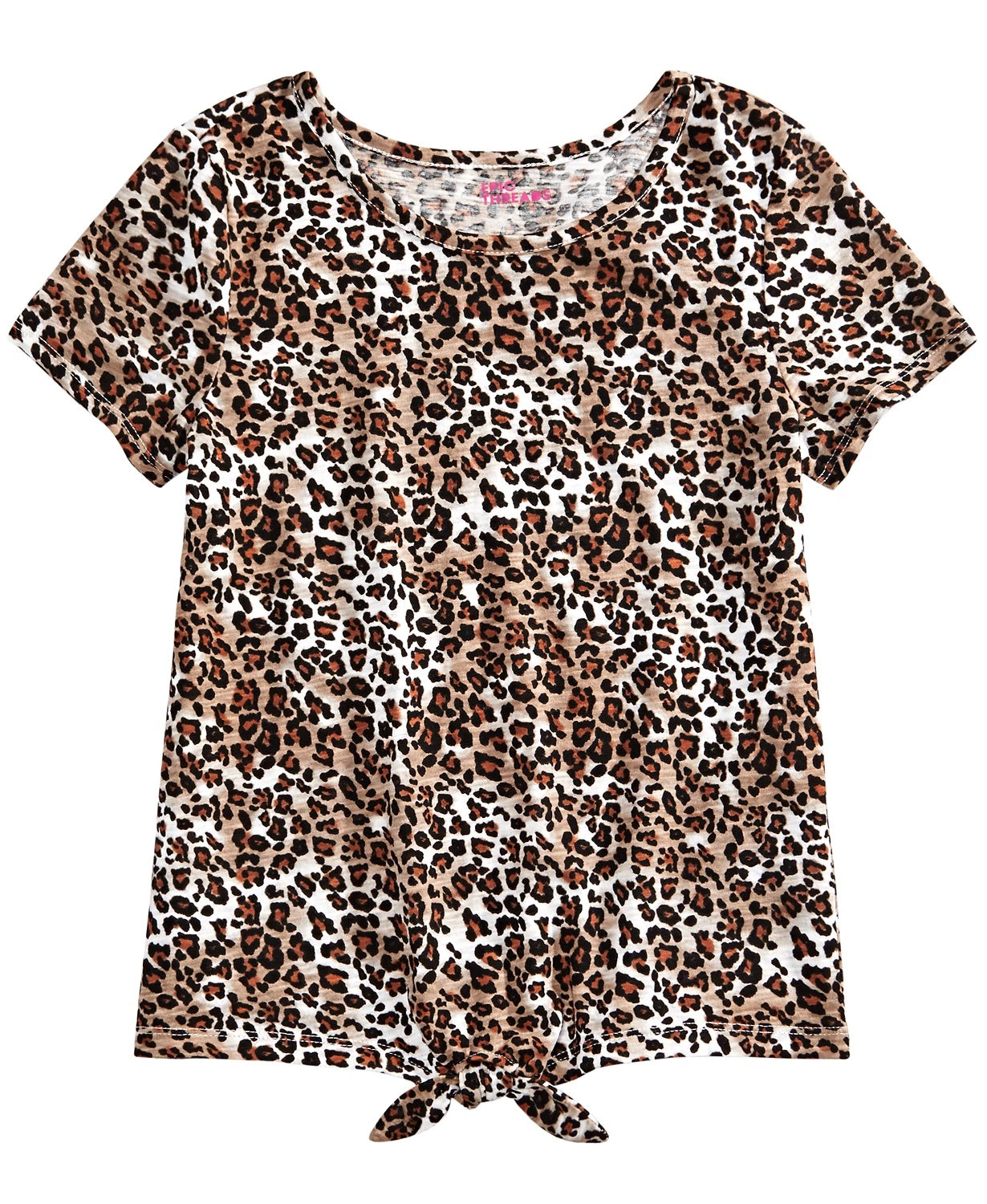 Epic Threads Big Girls Leopard-Print Tie Front T-Shirt White Size Small