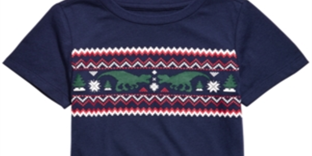 Bring a festive feel to his basic essentials with this T-shirt from Epic Threads| featuring a fun Fair Isle-inspired design with dinosaur accents printed across the chest