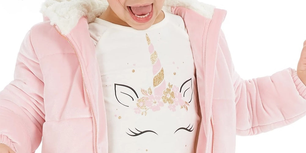 Scoop neckline|Unicorn face & horn graphic print at front|Cotton/polyester|Machine washable|Imported