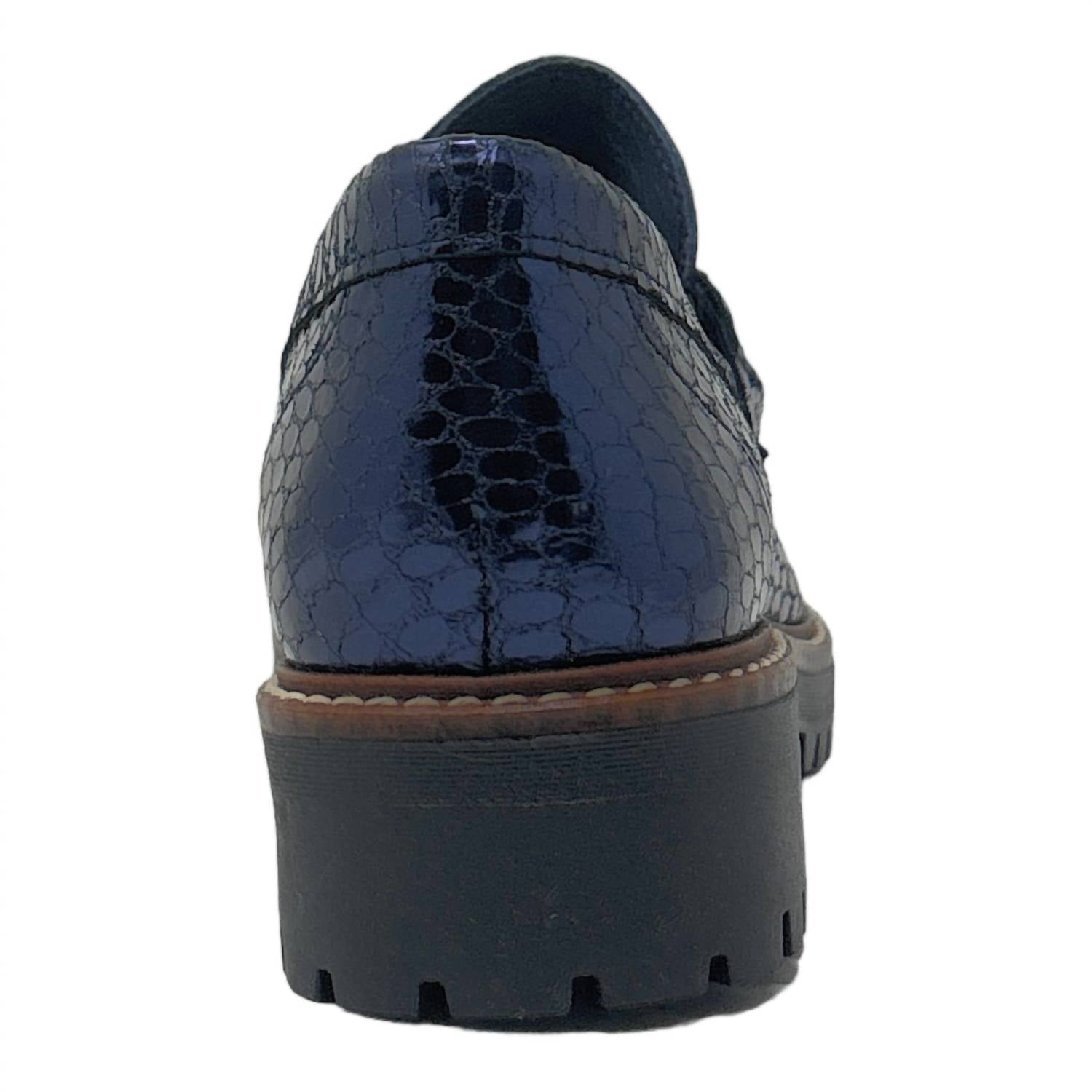 A preppy yet feminine take on the classic loafer. Step into stylish comfort with the Women's Sanibal Loafer by Eric Michael, perfect for the modern woman on the go. Crafted with a navy leather upper and lined with leather, this loafer boasts a well-cushioned leather footbed, providing support during long days. The round toe design is complemented by a practical block heel, adding a utilitarian flair that's ideal for both office wear and casual outings. Made in Portugal, these loafers are a sophisticated blend of comfort and style.