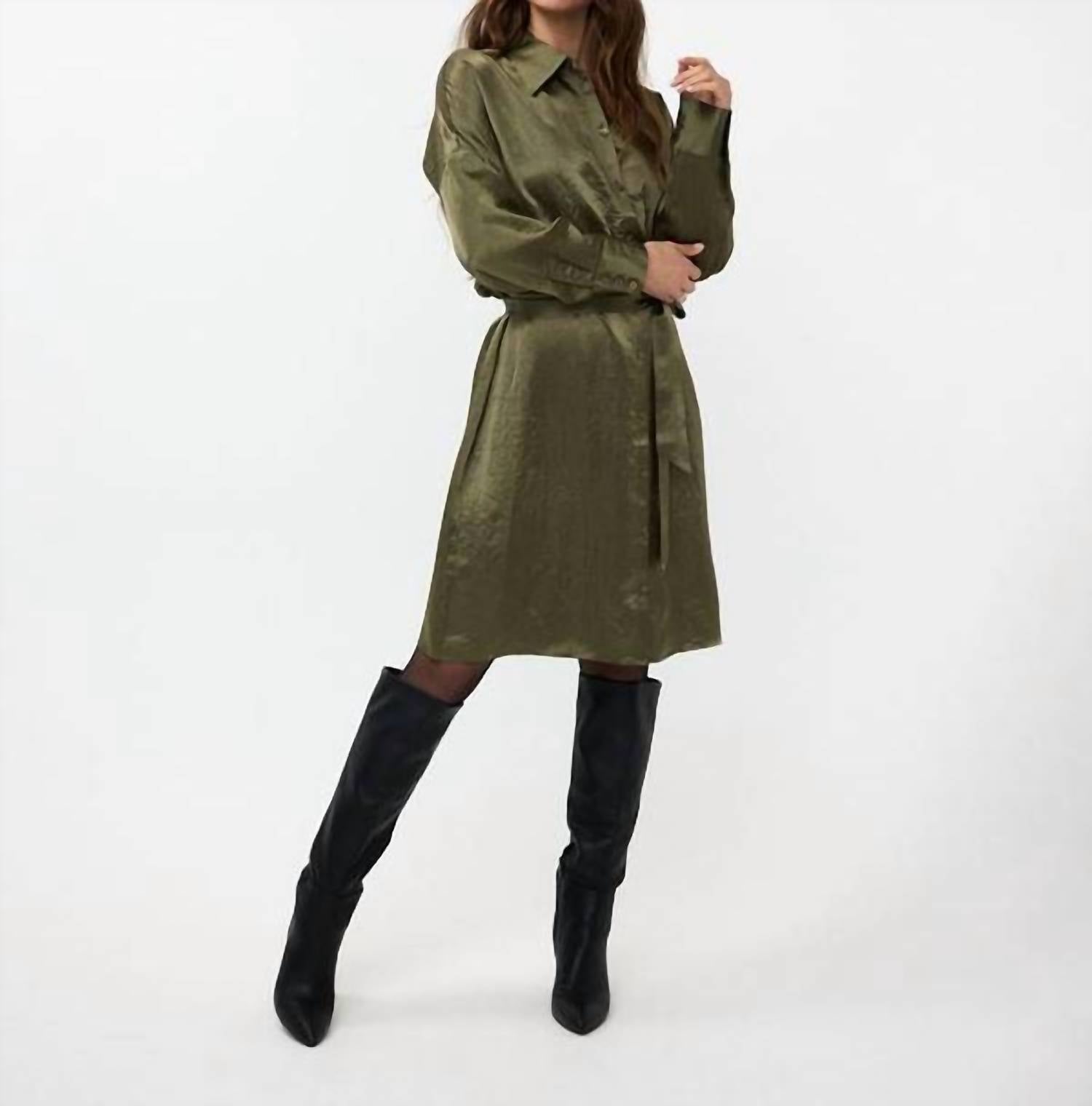 A midi dress so versatile, your options for wearing it are endless. Satin midi dress with button front a matching belt.