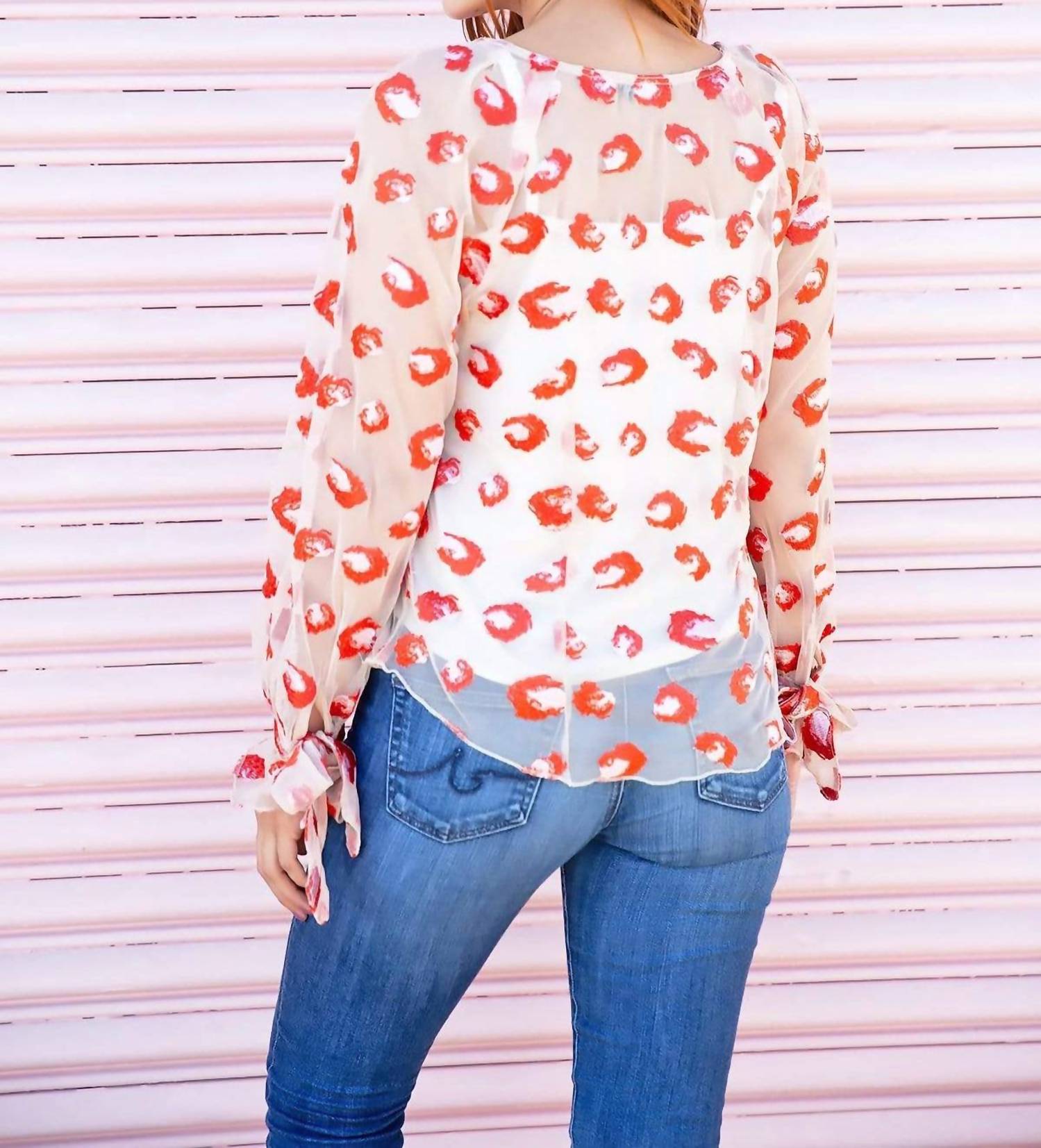 A versatile blouse that works from desk to dinner! The Cheetah Mash Embroidered Top by EVA FRANCO is a stunning piece for your wardrobe in vibrant pink leopard print. This long sleeve blouse features a tie-detail on raglan sleeves and a chic scoopneck style. Crafted from 80% sheer polyester and 20% nylon with a 100% polyester lining, it offers a standard length of 23.5 inches and is made in the USA. Closure: Pull-on styling. Care: Dry clean only. Ideal for adding a touch of boho chic to your Spring or holiday party look.