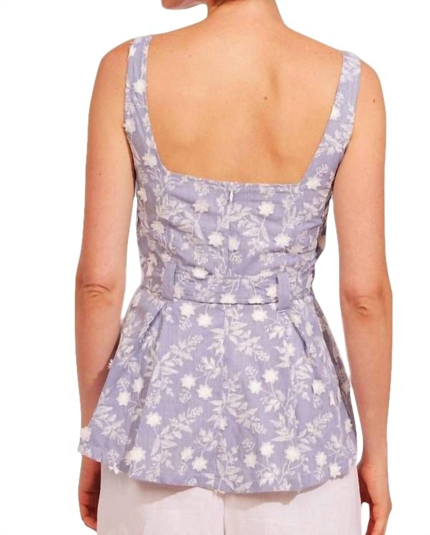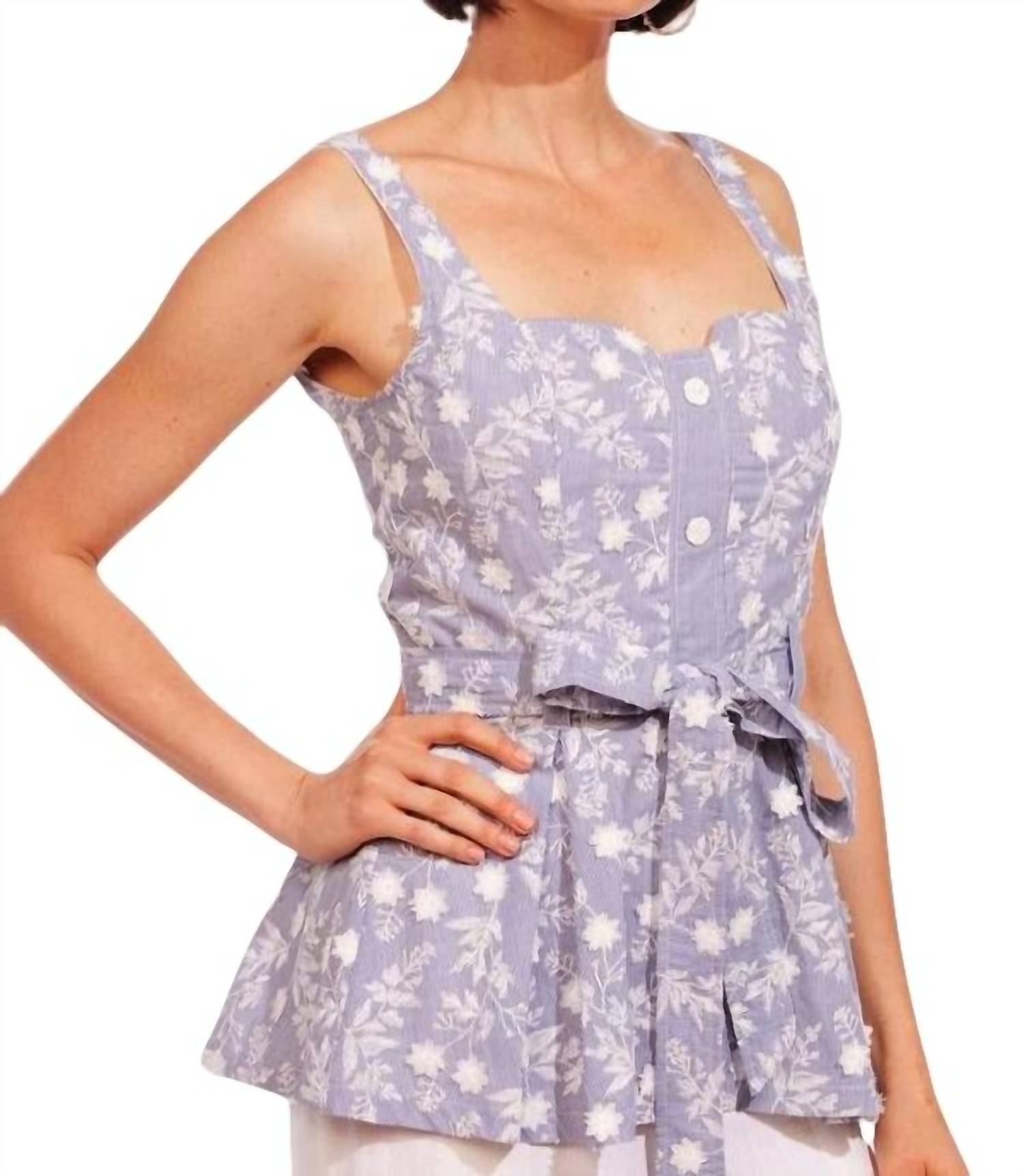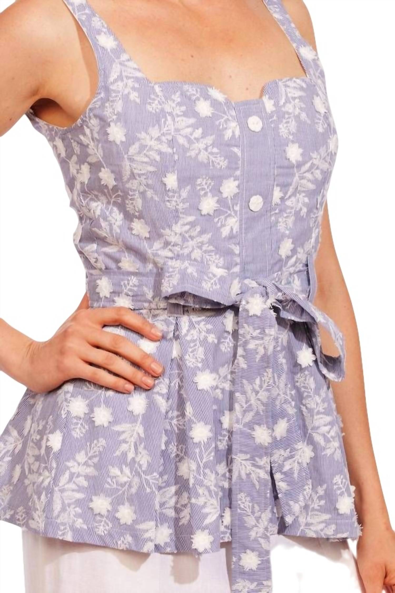 Sleeveless top. Tie at the waist. Button closure. 100% Cotton