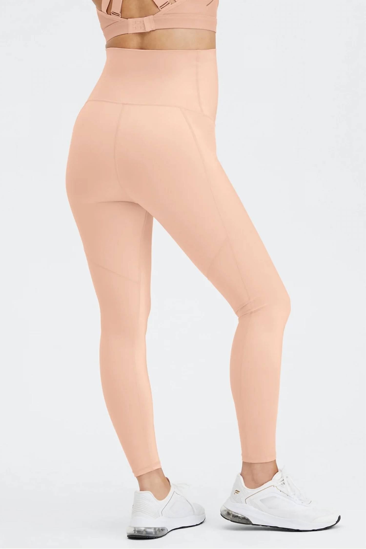 Leggings you can dress up or down for any occasion. Elevate your maternity wardrobe with Fabletics' High Waisted Shine Maternity Leggings in a chic solid pink. Tailored for total comfort, these leggings feature a pull-on closure with a high-rise waist and skinny leg style, made in buttery-soft PureLuxe fabric. Equipped with chafe-resistant and moisture-wicking properties, they ensure outstanding support and flexibility with 4-way stretch, while offering UPF protection for added sun defense. Care: Machine wash.