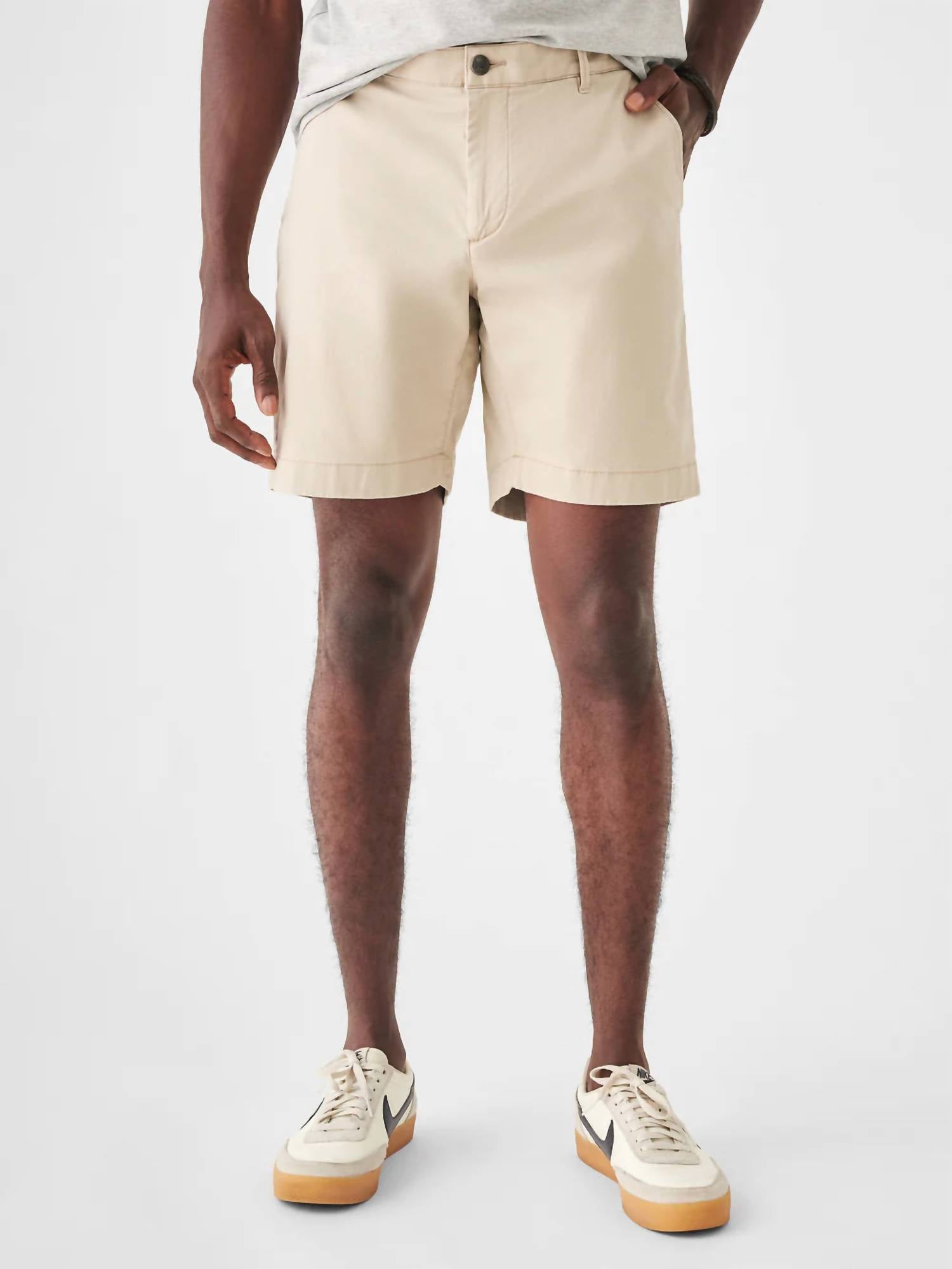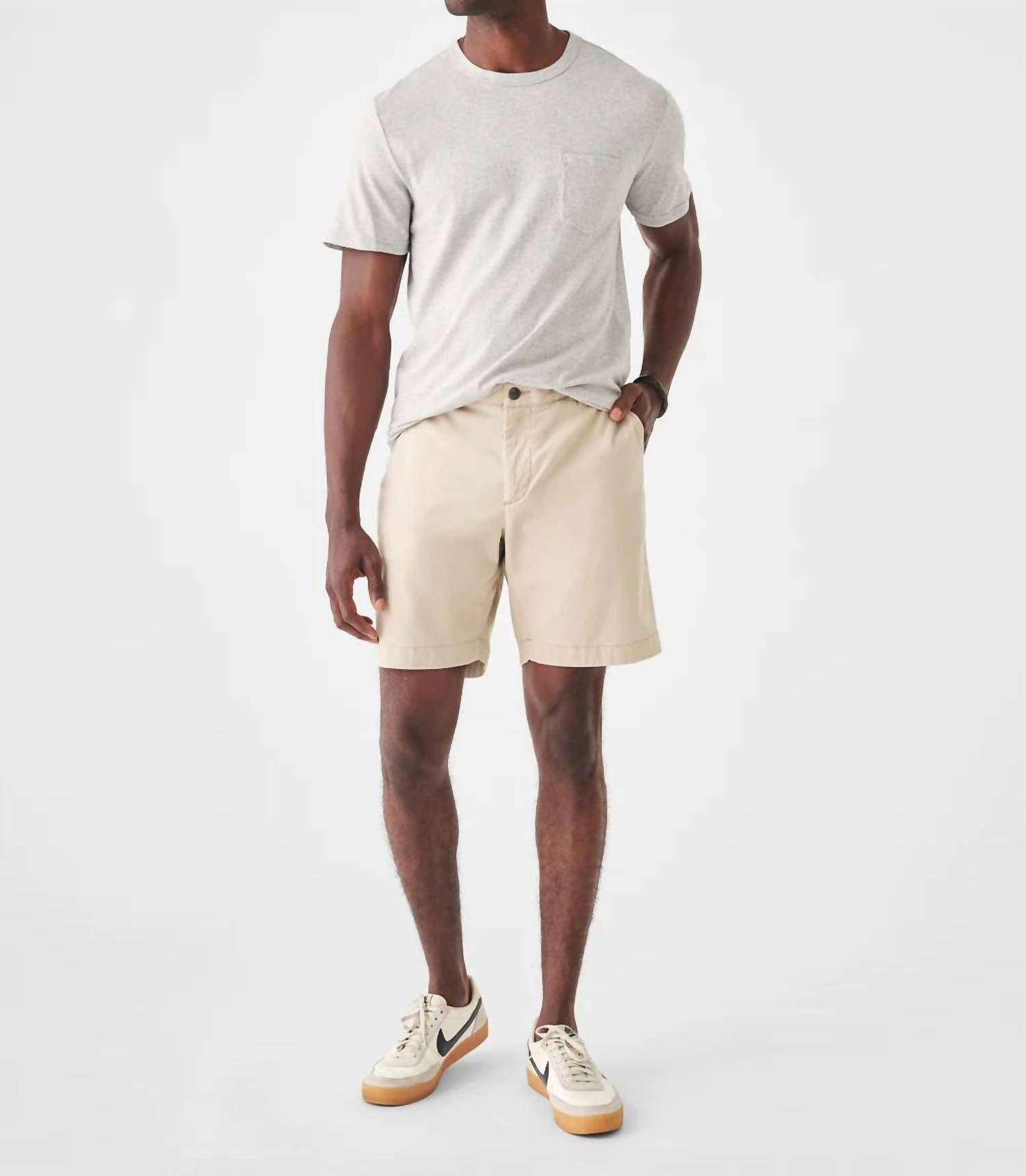 This Island Life Short features a flat front and slash pockets. Fit: 8" Inseam, a relaxed fit and straight leg, rise sits below the natural waist. Detail: Shank closure, fly zipper. Material: 60% Organic Cotton, 39% Tencel Refibra, 1% Elastane. Model: Jamal is 6'2" wearing size 32. Care: Close all zippers before wash. Turn inside out. Machine wash cold with like colors. Delicate cycle. Do not bleach. Tumble dry low. Remove promptly. Warm iron when needed. Imported