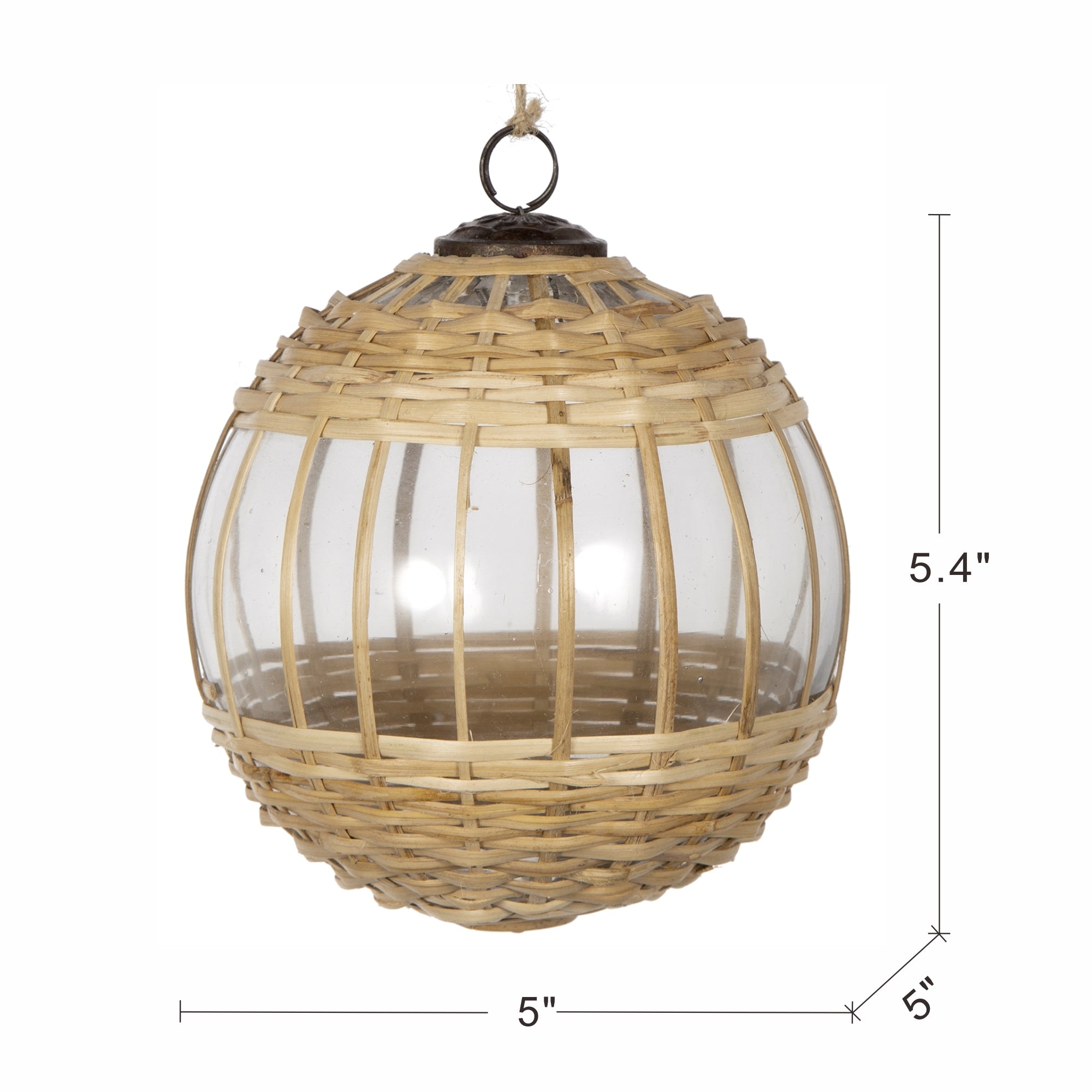 Add this beige glass and cane ornament to your collection for a timeless, nature-inspired touch that elevates any holiday display