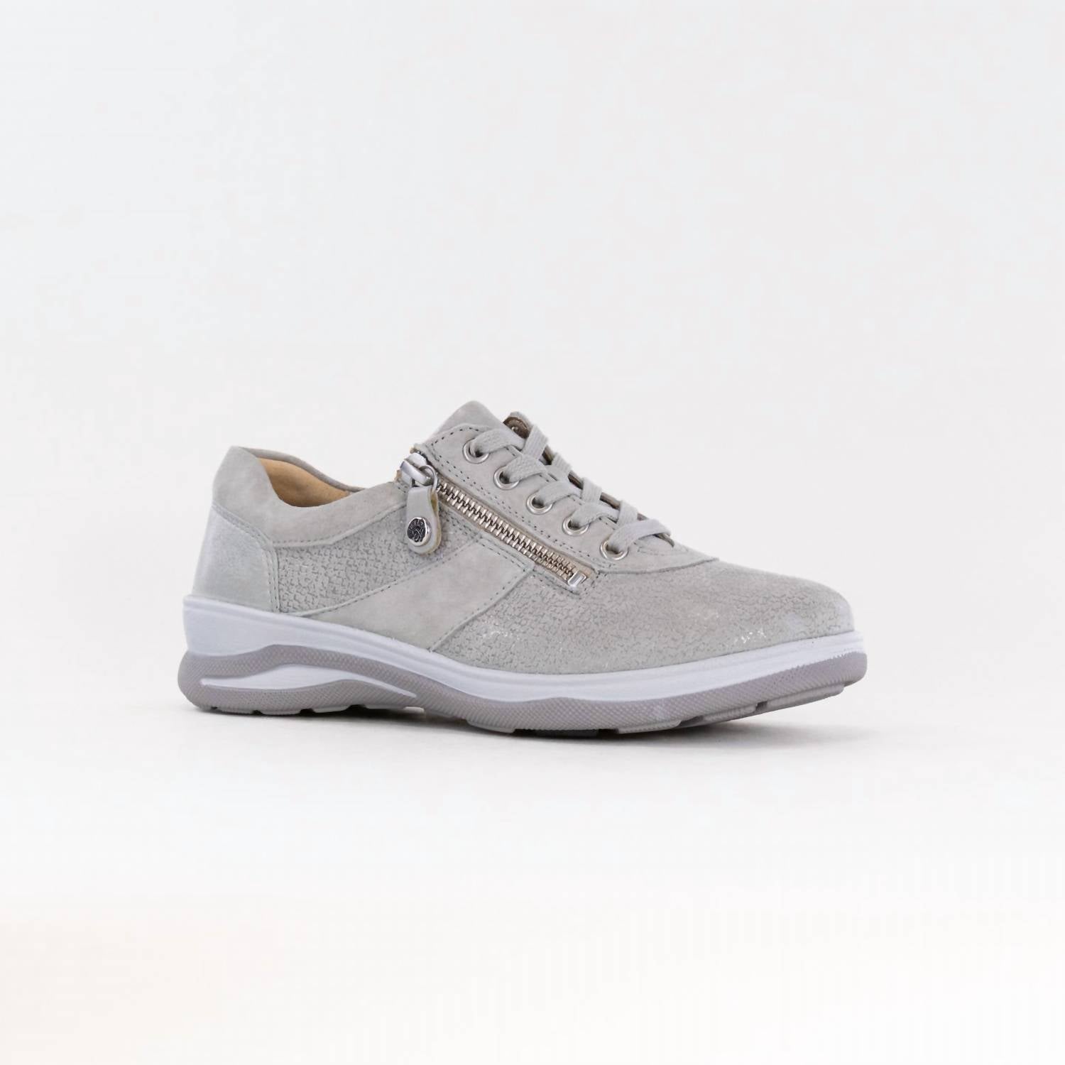 Get your daily steps in with these adorable sneakers. Step into comfort with the Women's Multistretch Haley Shoes by Fidelio, featuring a seamless design perfect for any minimalist's spring wardrobe. Designed with both zipper and lace closure, these sneakers offer a customized fit and support orthotics with a removable natural cork insole. The air cushion polyurethane sole ensures a soft tread with excellent grip, while the leather linings provide a luxurious touch. Ideal for a dinner party, these shoes come in a stylish Ciottolo Kombi color with a round toe and flat heel.