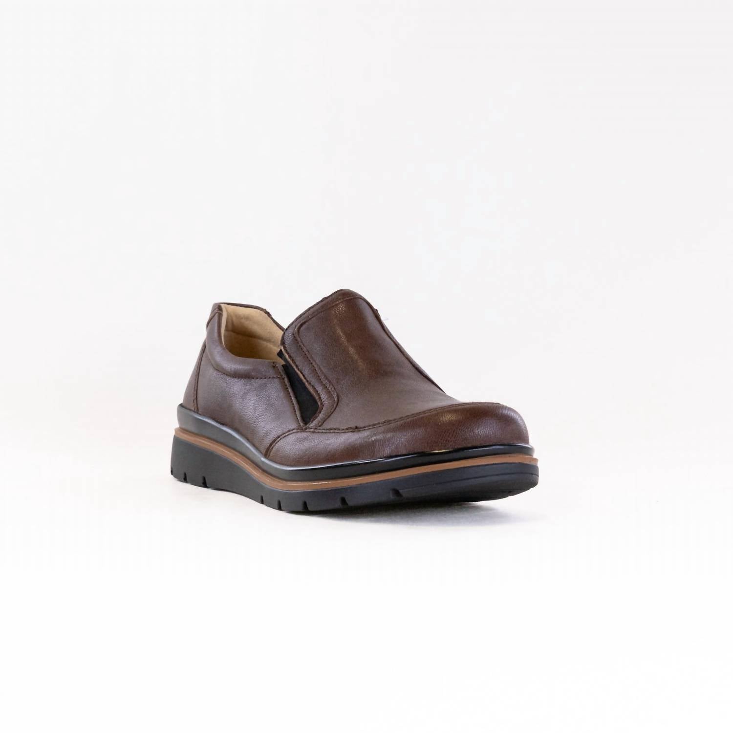 A classic loafer that is both comfortable and polished. Step into comfort with the Women's Namir Multistretch Gallery Shoes by Fidelio, crafted in luxurious brown lamb/goat leather. These shoes feature a removable, soft ECO certified cork insole, perfect for accommodating full orthotics, and an air cushion polyurethane sole providing a soft tread with excellent grip. The heel height measures 30 mm with a gradient of 15 mm, ensuring balance in every step. Ideal for workwear, these flats offer medium width and a seamless design, perfect for spring and Thanksgiving gatherings.