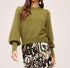 The Lia Shirred Sleeve Crew Neck Sweater by Fifteen Twenty, in a chic olive hue, features elegant long blouson sleeves and a shirring detail at the shoulders, offering a relaxed fit. This stylish sweater is crafted from a soft blend of 30% Acrylic, 27% Nylon, 20% Wool, 20% Polyester, and 3% Spandex, measuring 20 inches in length for size S. Tailored with a crewneck and pull-on closure, it's a versatile piece imported for a touch of quiet luxury perfect for sophisticated occasions. Care for this garment by dry cleaning only and laying it flat to dry.