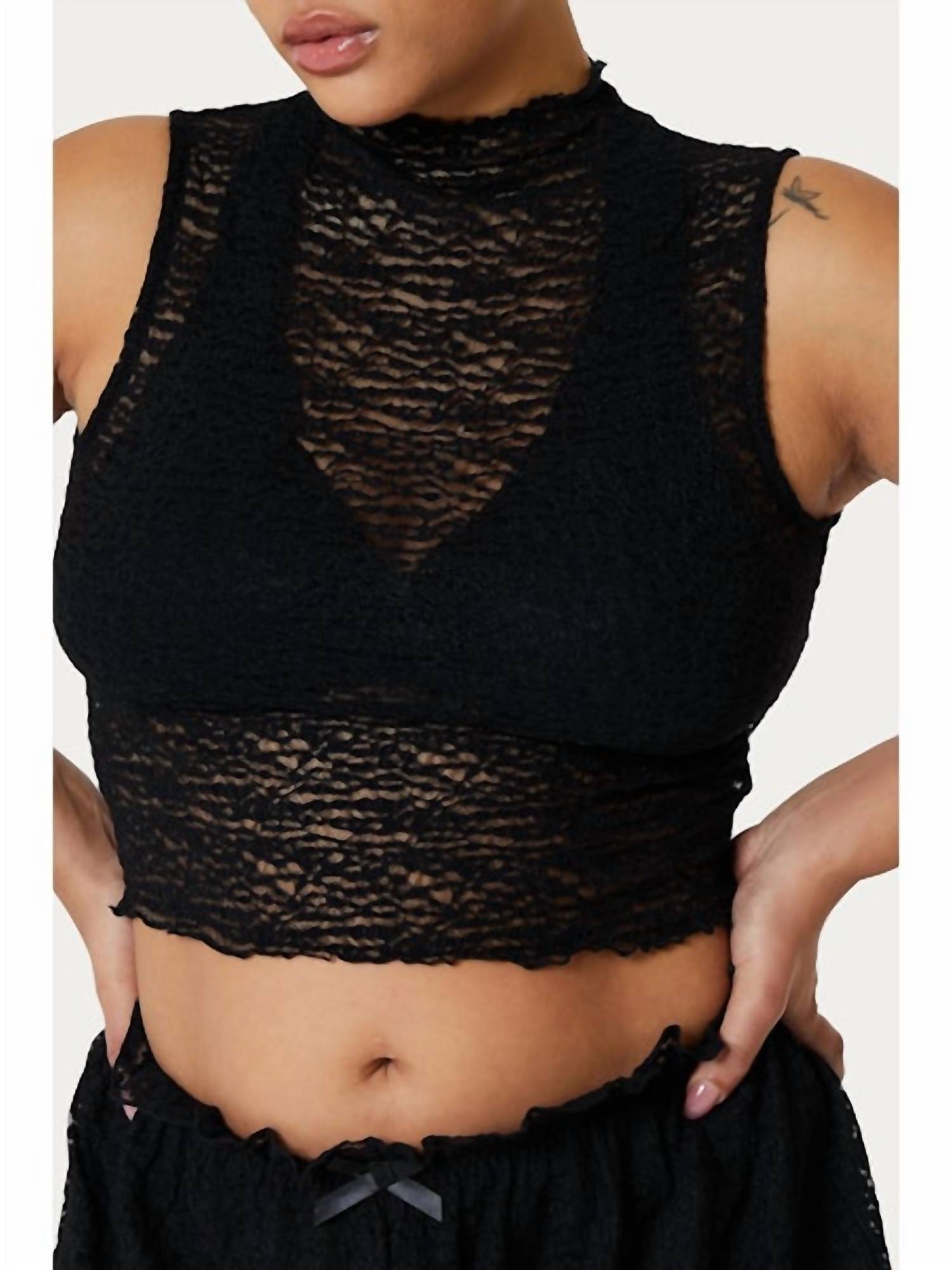 The perfect tank top for those warmer weather seasons. Introducing the Crepe Mesh Tank Top by Find Me Now, a cutting-edge minimalist piece in stylish black for an effortless vacation look. This top features a cap sleeve and a high neck with a cropped fit that's perfect for the modern woman. Designed with mesh in a super stretchy blend of polyamide and elastane, it offers a snug fit, so consider sizing up. Made ethically in China, this top requires hand washing cold and laying flat to dry, ensuring its delicate fabric maintains its integrity.
