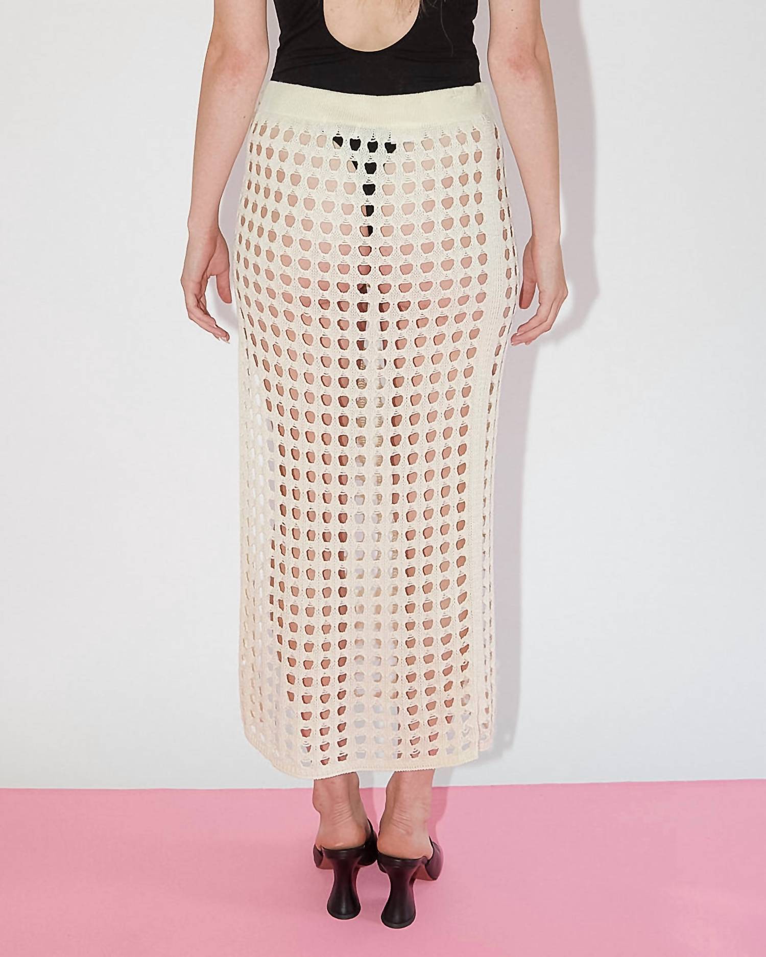 Tuck your favorite tee into this midi length skirt for an effortlessly cool look. Introducing the Mariela Knit Midi Skirt by Find Me Now, a boho-chic piece perfect for summer vacations. This cream skirt features a textured knit material and a convenient pull-on closure for easy wear. Care for this stylish garment by machine washing as needed. Ideal for effortlessly elevating your warm-weather wardrobe.