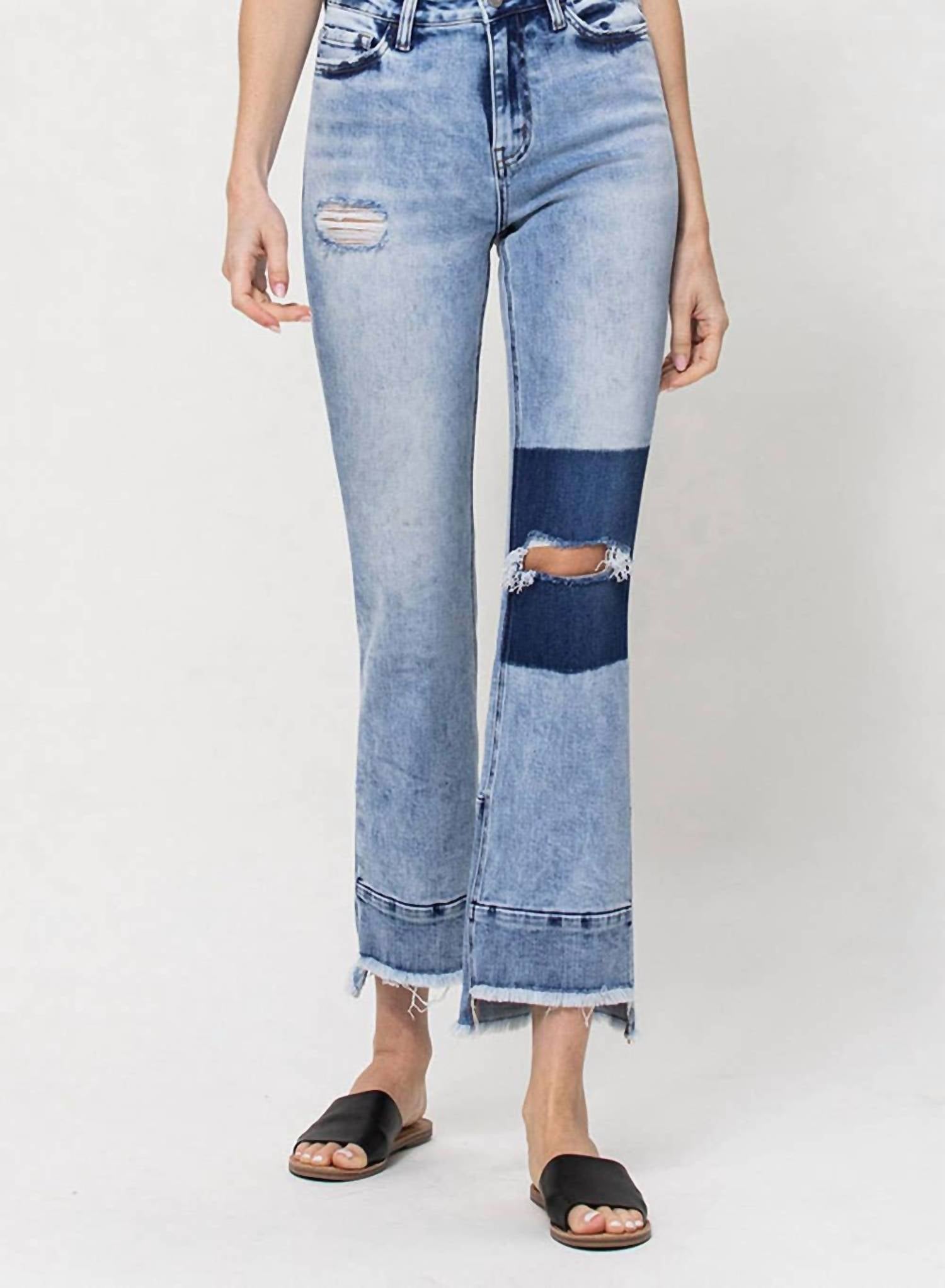 Flying Monkey - High Rise Distressed Patched Crop Flare Jeans