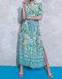Introducing the Makayla Shirt Dress by FLYING TOMATO, a boho chic staple in an elegant ivory blue print. This patterned dress features elbow sleeves with cuffs and a classic shirt collar, complemented by a self-tie sash for a flattering silhouette. Crafted from 100% polyester, it boasts a button closure for easy wear. Care instructions include machine washing and laying flat to dry, perfect for your next evening event this spring.