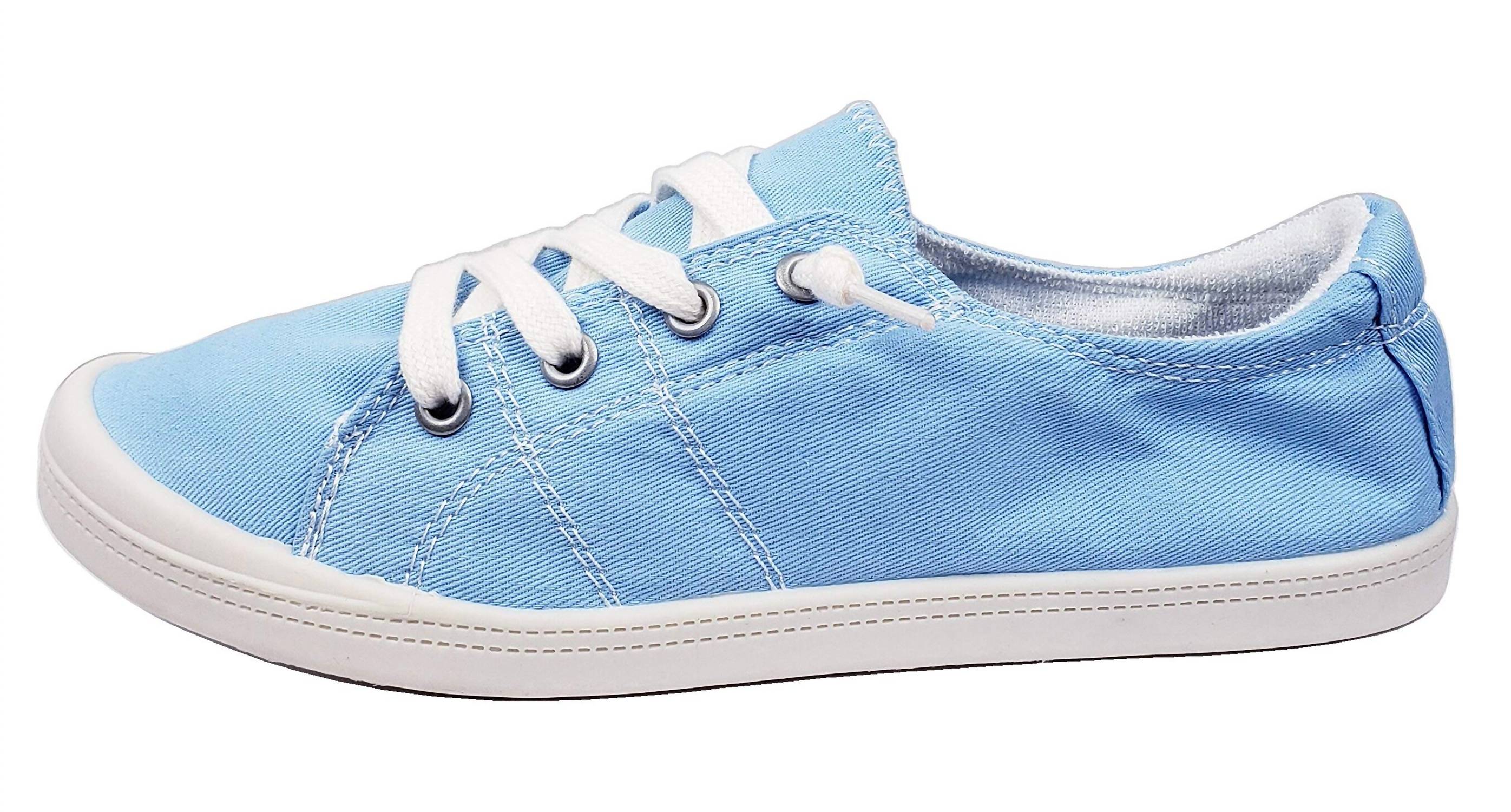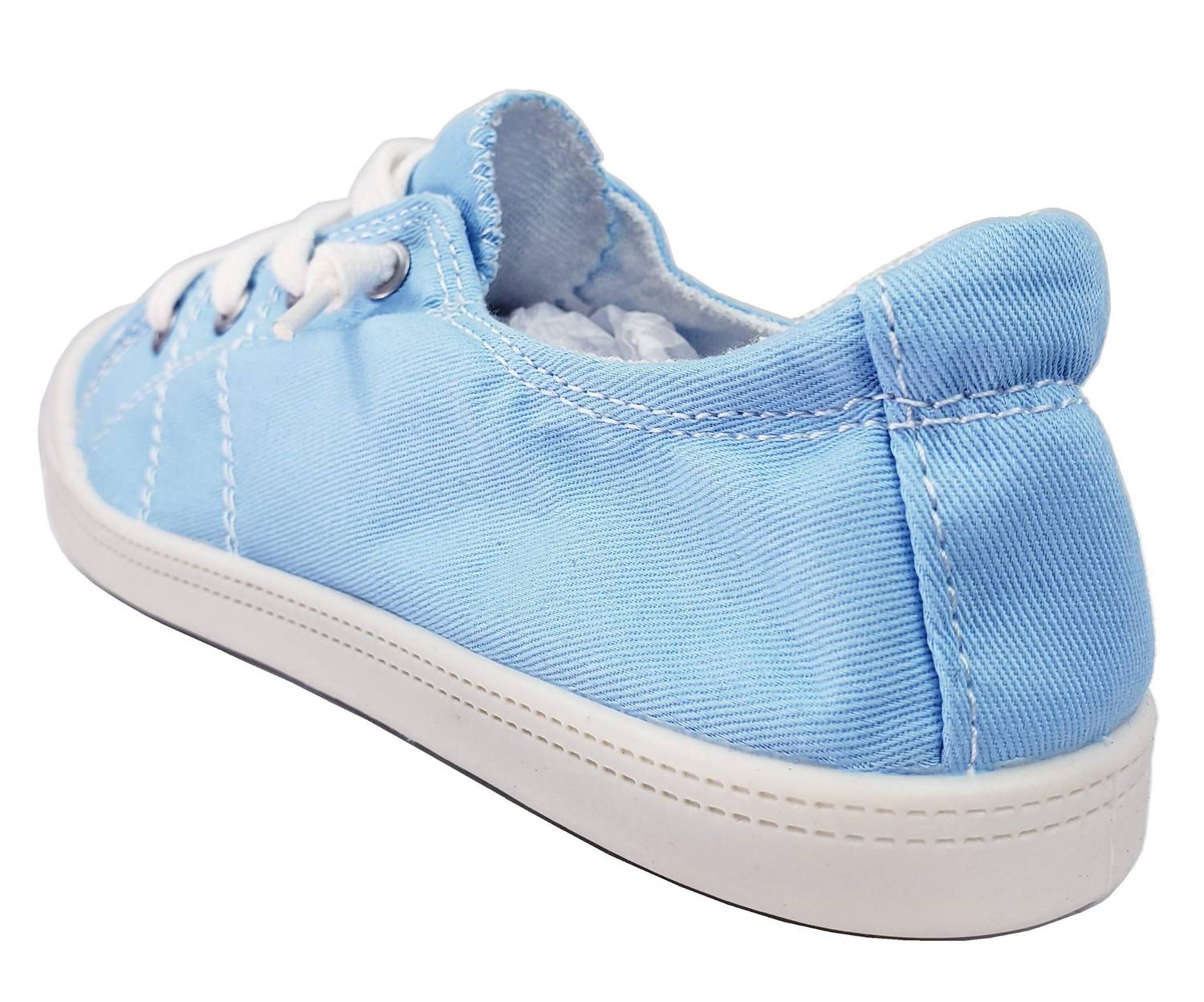 Get your daily steps in with these adorable sneakers. Step up your style with the Women's Comfort Canvas Classic Lace Up Sneakers by Forever Link in vibrant Light Blue. These sneakers boast a low top design and a lace-up closure for a secure fit. Crafted with synthetic materials and a rubber sole, they are perfect for minimalist summer looks and various occasions, including dinner parties and Thanksgiving gatherings. Designed with a flat heel for comfort, these sneakers are a versatile addition to your wardrobe.