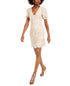 Classic tweed is revamped by foxiedox in this curve-hugging sheath dress designed with short puff sleeves.| Approx. 34 long from center back neck to hem. Length is based on size S and varies 1/2 between sizes| V-neck; Sheath silhouette| Pull-on styling| Short puff sleeves| Decorative buttons