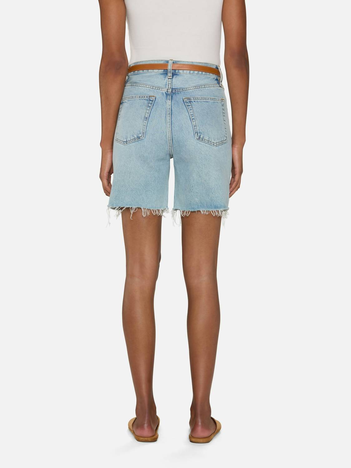 High-waist is here to stay and we especially love this style short. Introducing the Timeless High Rise Denim Short by FRAME, perfect for embracing the 90s fashion trend with a solid, tricky color that stands out. Crafted from 100% regenerative cotton, these shorts ensure comfort and sustainability. It features a button fly with a frayed hem, adding a stylish touch to your springtime adventures. Care instructions are easy to follow: simply machine wash and tumble dry.