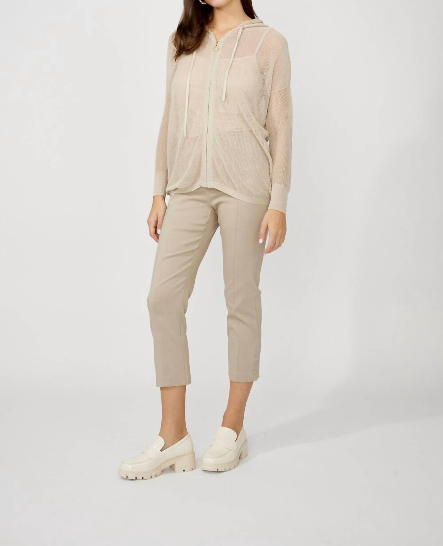 Cooler temps call for layering and we love this adorable sweatshirt for all the obvious reasons. Elevate your wardrobe with the Frank Lyman Hooded Casual Zipper Jacket, featuring a shimmer knit design in a chic beige shade. This women's jacket boasts long sleeves and a zip closure, crafted from 91% Rayon and 9% Metallic for a patterned look. With a garment length of 25 inches, it's an effortless choice designed in Canada to add glamour to any outfit. Care instructions include hand washing and laying flat to dry, ensuring this piece remains a staple in your wardrobe.