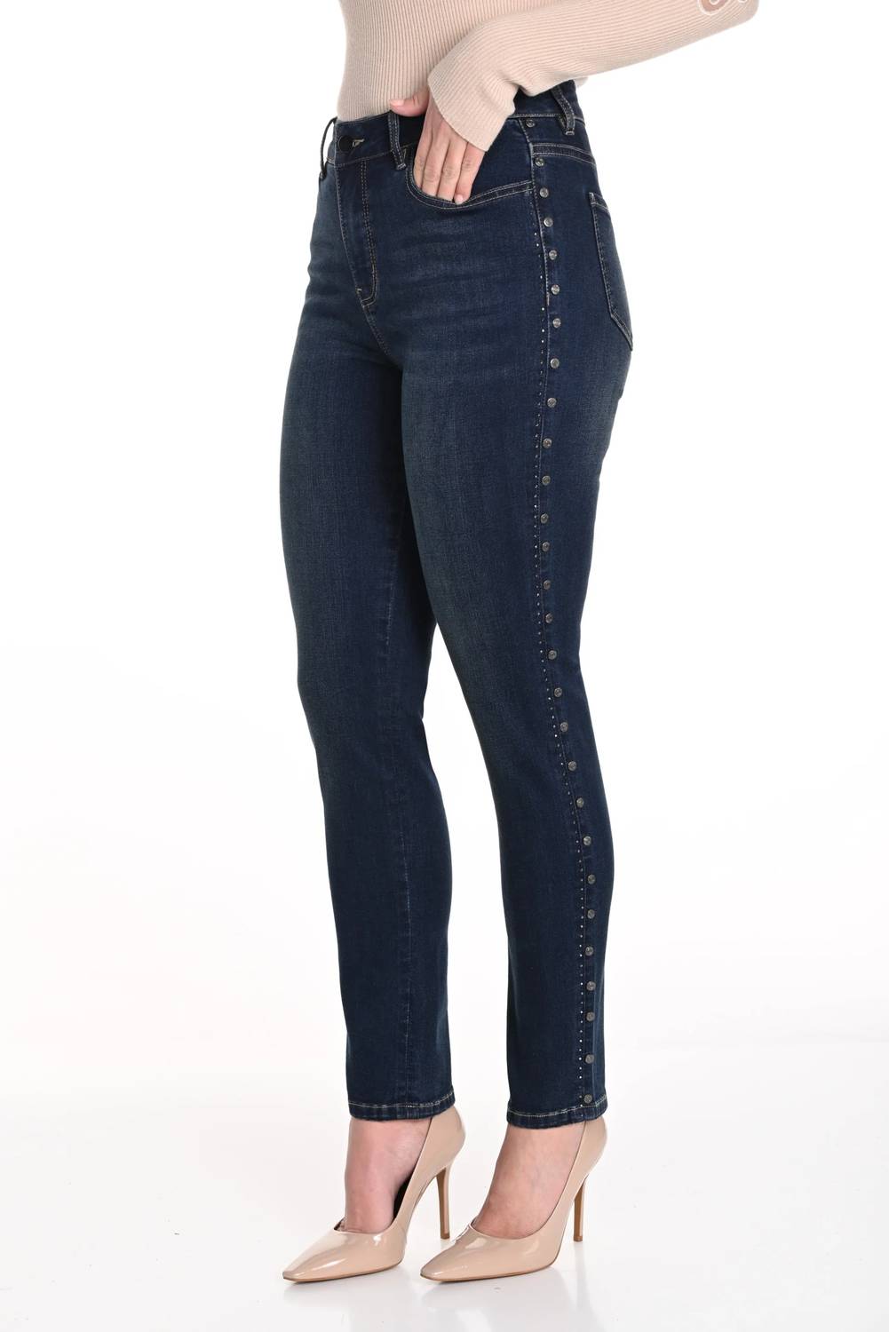 The perfect skinny jeans to wear with your favorite boots this season! Elevate your wardrobe with the Frank Lyman Skinny Ankle-Length Jeans in a sophisticated dark blue hue. These women's jeans are crafted from a woven denim fabric composed of 73% cotton, 23% polyester, 3% rayon, and 1% spandex, offering a chic blend of comfort and style. The dark wash denim is adorned with rhinestones and jeans button detailing, while the high-rise skinny leg design features a convenient zip closure. To keep them looking their best, hand wash in cold water, hang to dry, and avoid ironing.