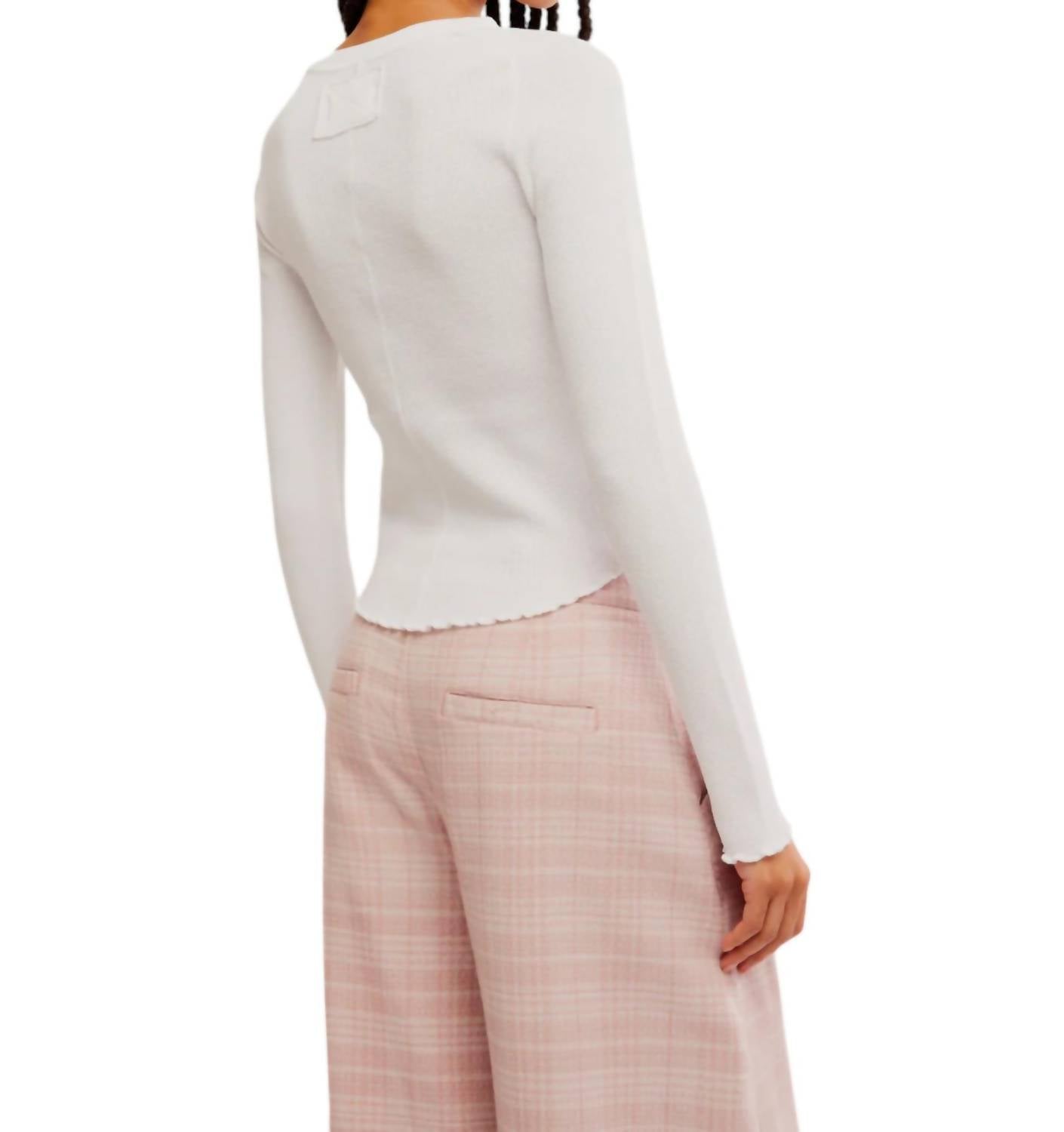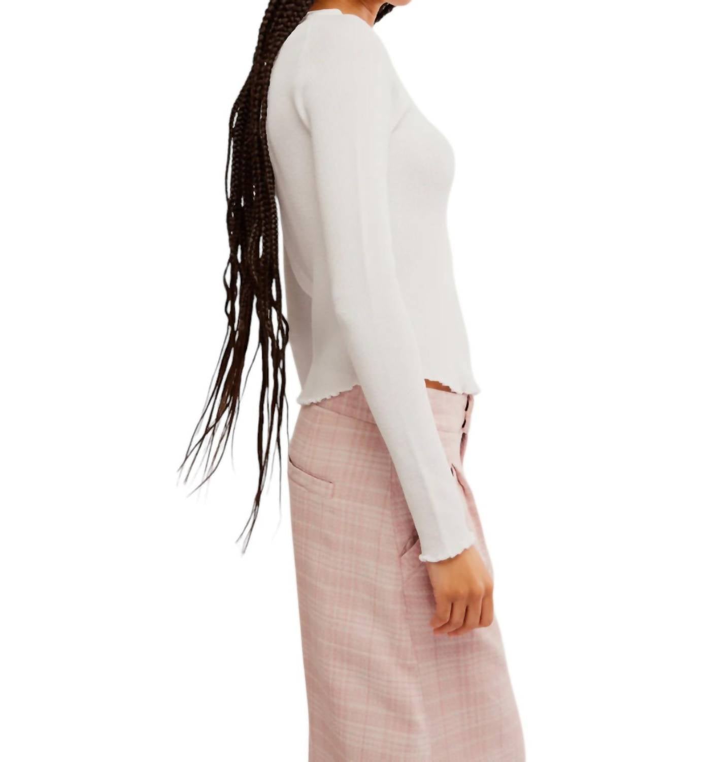 Offering laid-back style with timeless appeal. Long-sleeve tee features a soft waffle-knit cotton fabric. Designed for a relaxed fit with raglan-cut sleeves and a trendy lettuce-edge trim. Hip-length style is topped with a classic crew neckline. Effortless pull-on style. Machine wash cold.