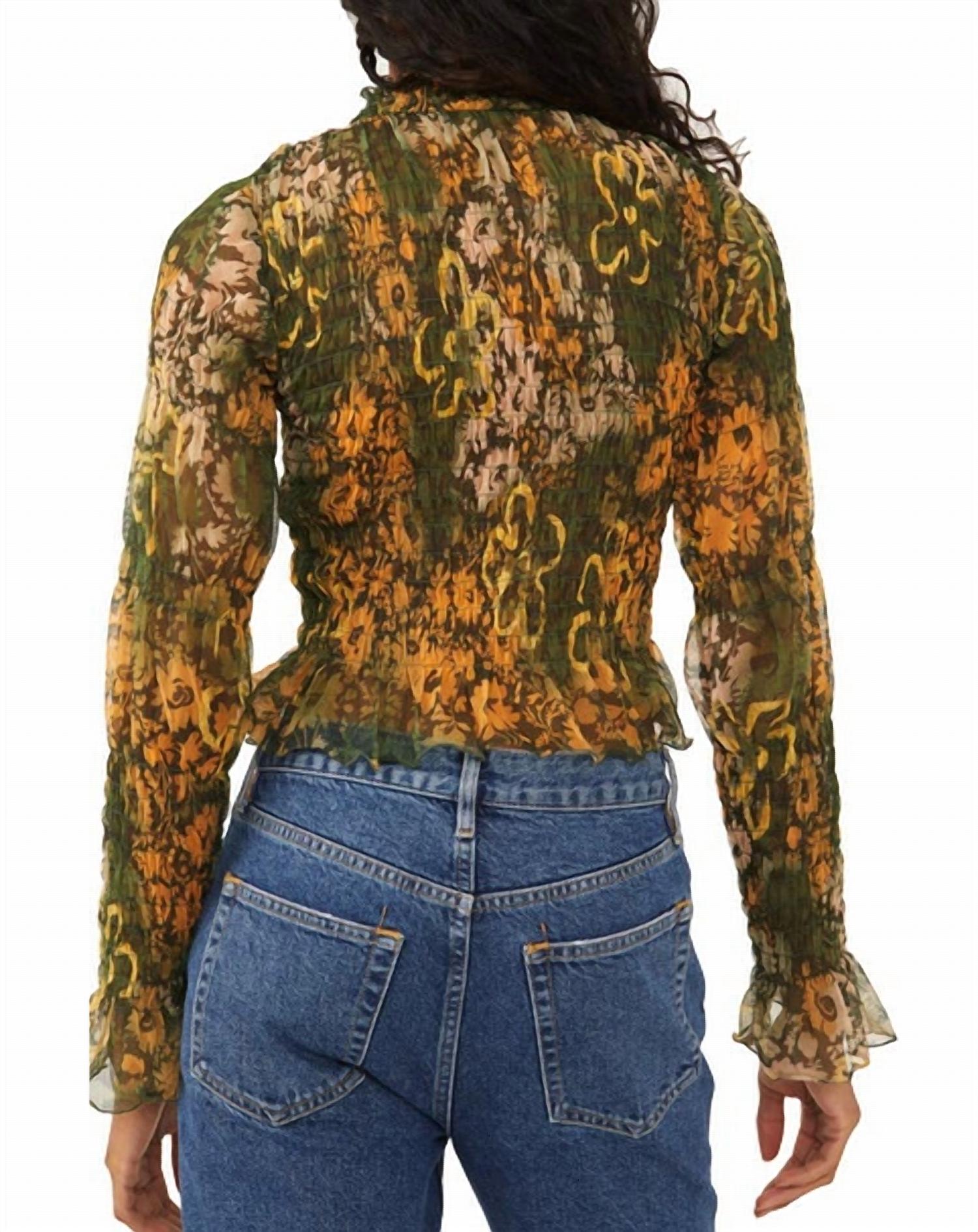 Pullover. Mock neck. Long ruched sleeves. Unlined. Machine washable. 20" L