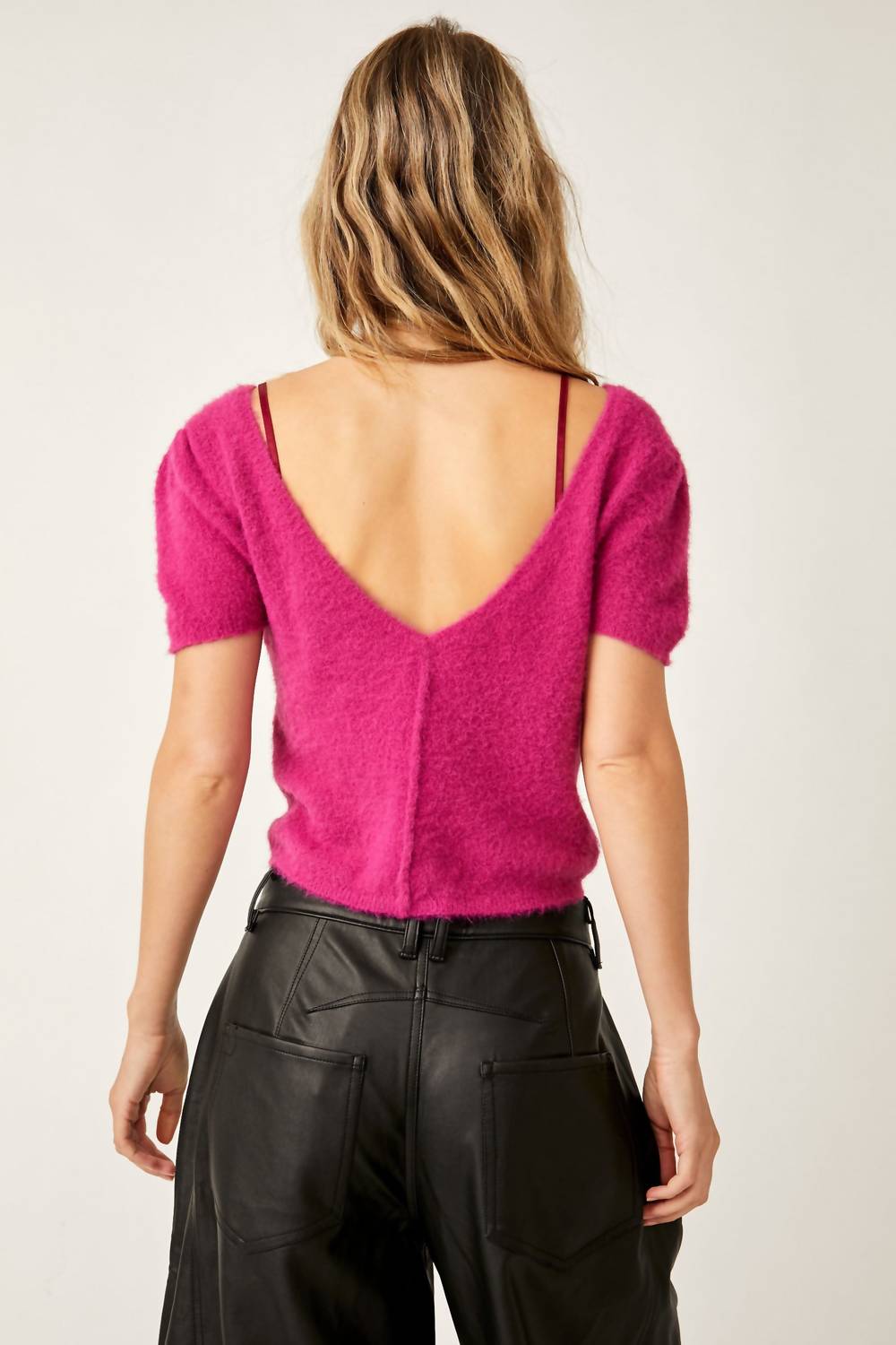 Soft and ultra-cozy, slim-fitting. This textured top is featured in a short-sleeve silhouette and cropped style with a low scoop neckline, cap-inspired sleeves and raised seam detail.Care instructions: Hand Wash Cold. ImportMeasurements for size small: Bust, 26.5 in. Sleeve, 5.12 in. Length, 16.25 in.