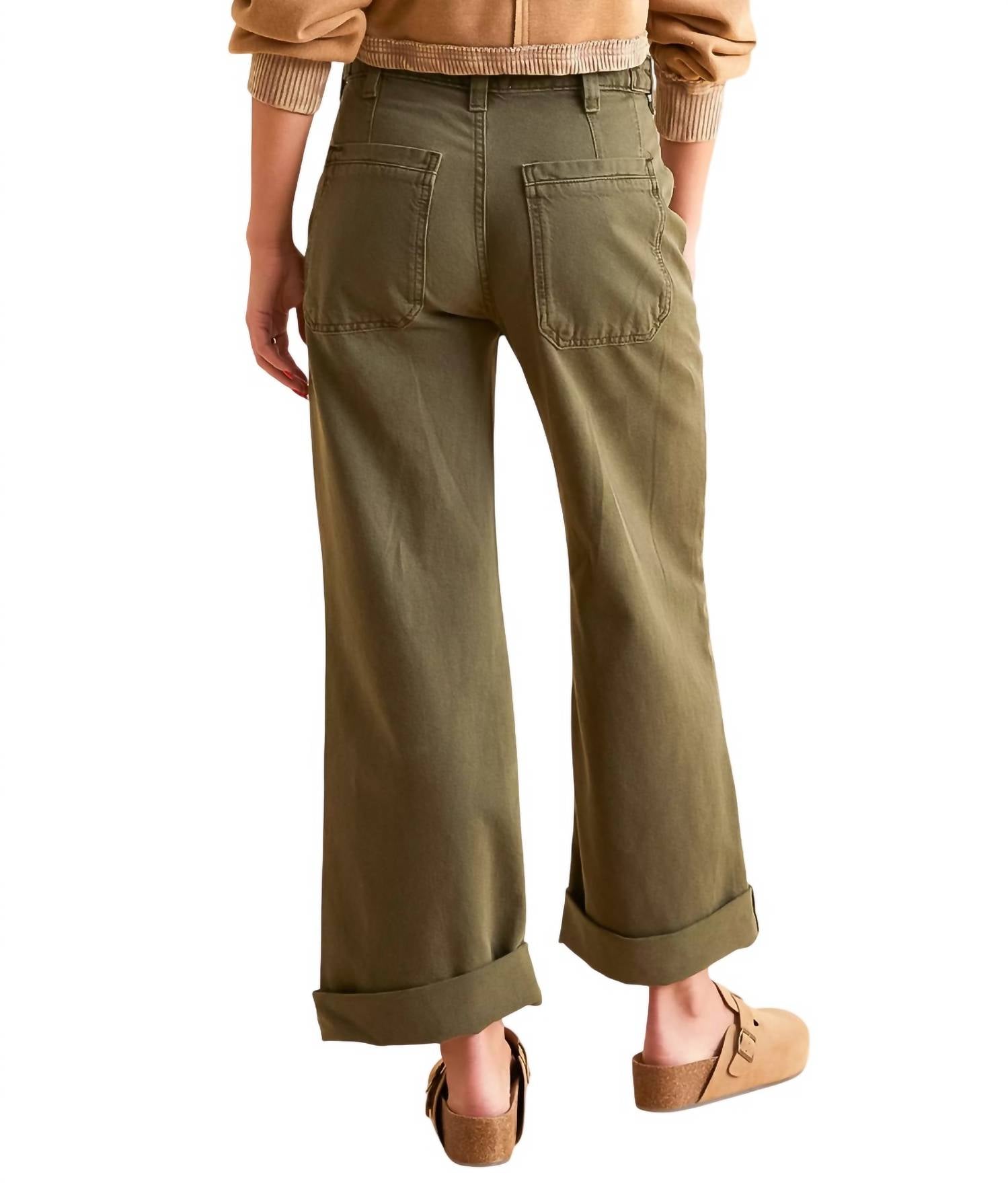 Wide leg and mid-rise for a relaxed look. The inseam of this jean measures 27" when cuffed. 100% Cotton (Non-Stretch). For a bigger, looser look you may want to size up or for a more fitted look, order true to size. Hidden button fly. 21" bottom opening. Adjustable button waistband. Front patch pockets.
