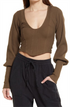 Free People Women's Petra U Neck Cotton Blend Crop Top Brown Size Medium