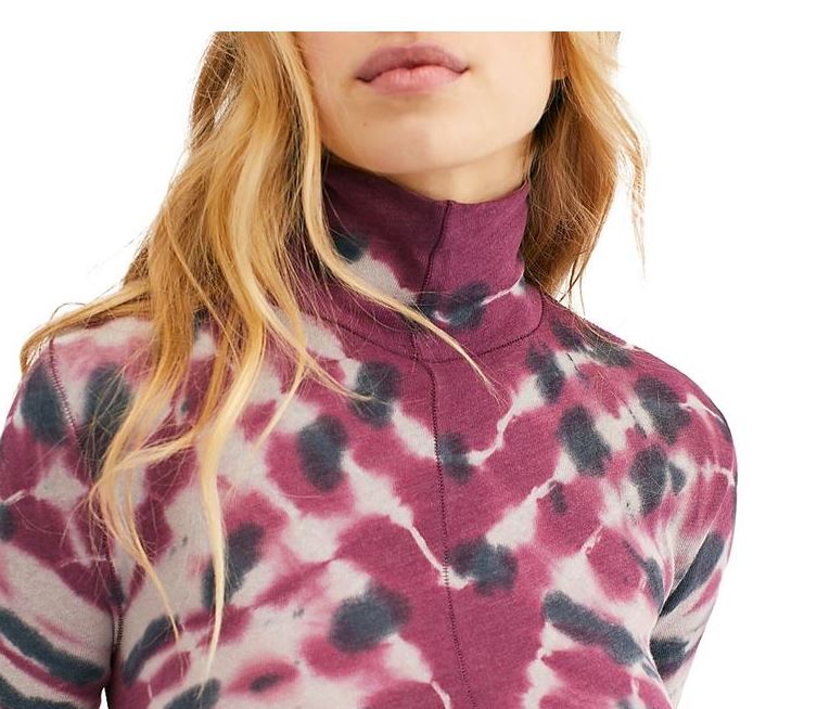 Free People Women's Psychedelic Mock Neck Tee Red Size X-Small