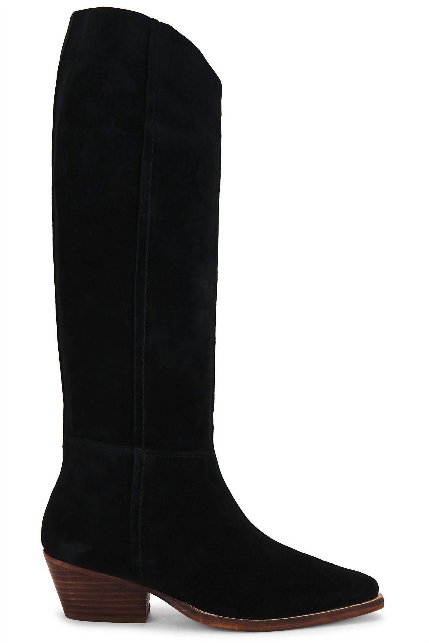 Step out in confidence and showcase your impeccable taste with these fashionable and versatile boots. Their classic style will have you reaching for these boots season after season. Introducing the Women's Sway Low Slouch Boot by Free People, a chic addition crafted from black suede for that ultimate sporty style. Made in India, this heeled boot features a pointed toe and a stable block heel measuring approximately 50mm/2 inches. With a comfortable 15.5-inch shaft and a circumference of about 38cm, it's a perfect blend of style and comfort. The suede upper pairs seamlessly with a leather sole for a sophisticated finish.
