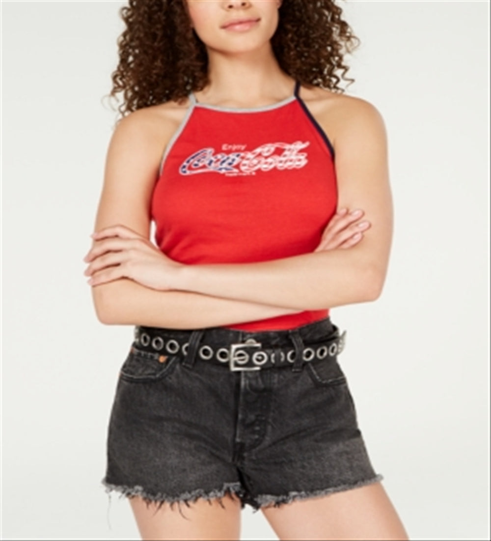 Pay tribute to your fave soda with this sporty racerback tank from Freeze. It showcases the iconic Coca-Cola logo front and center. | Hits at waist; fitted| Scoop neckline with thin straps| Coca-Cola graphic at front; racerback; unfinished hem at bottom| Cotton/polyester| Machine washable