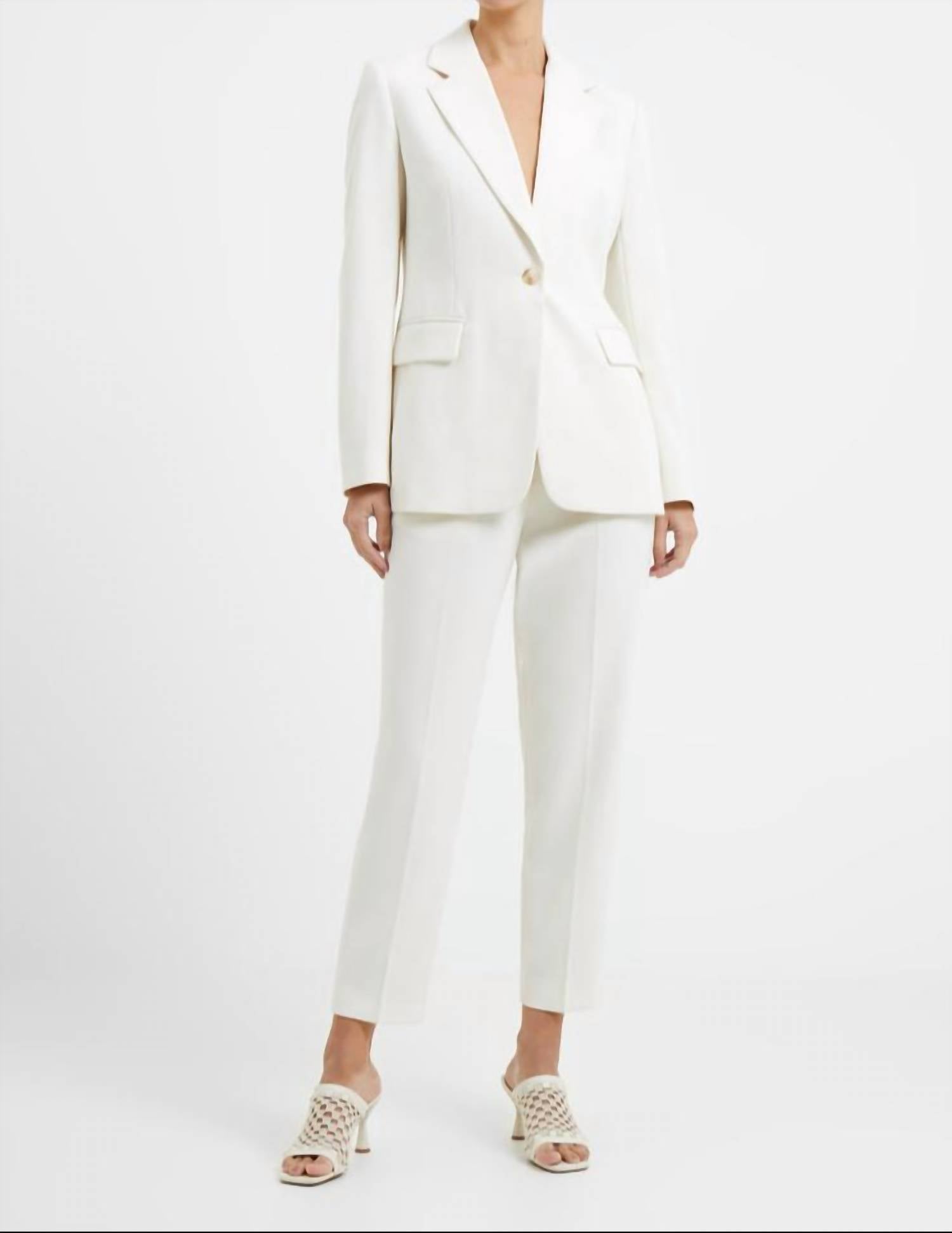 Fabric: soft, smooth, white. Hook & fly zip fastening. 2 side pockets. Tapered fit. Cropped length. US Size 6 inside leg length is 69 cm.