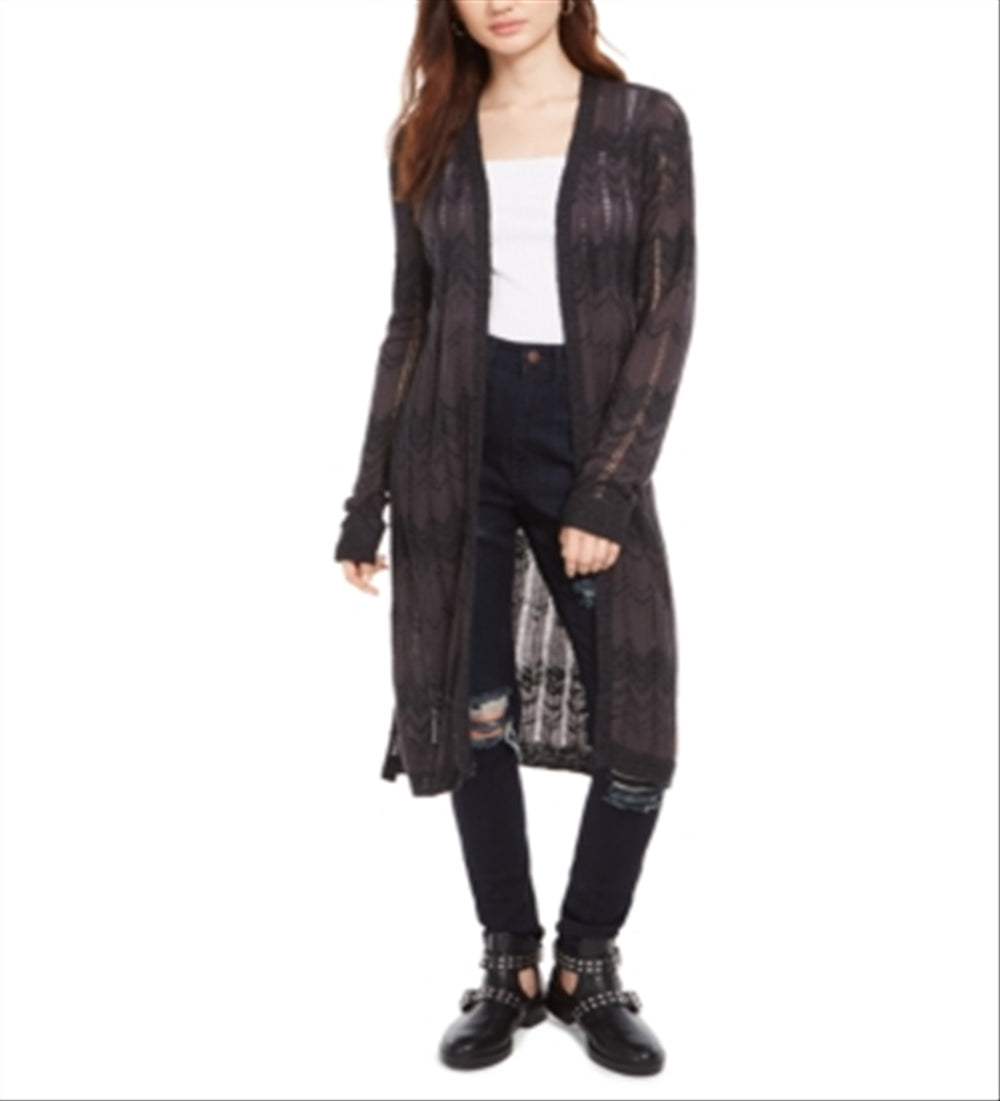 layer like a pro with freshman's duster-length cardigan| this lightweight piece features an open front and a delicate pointelle knit
