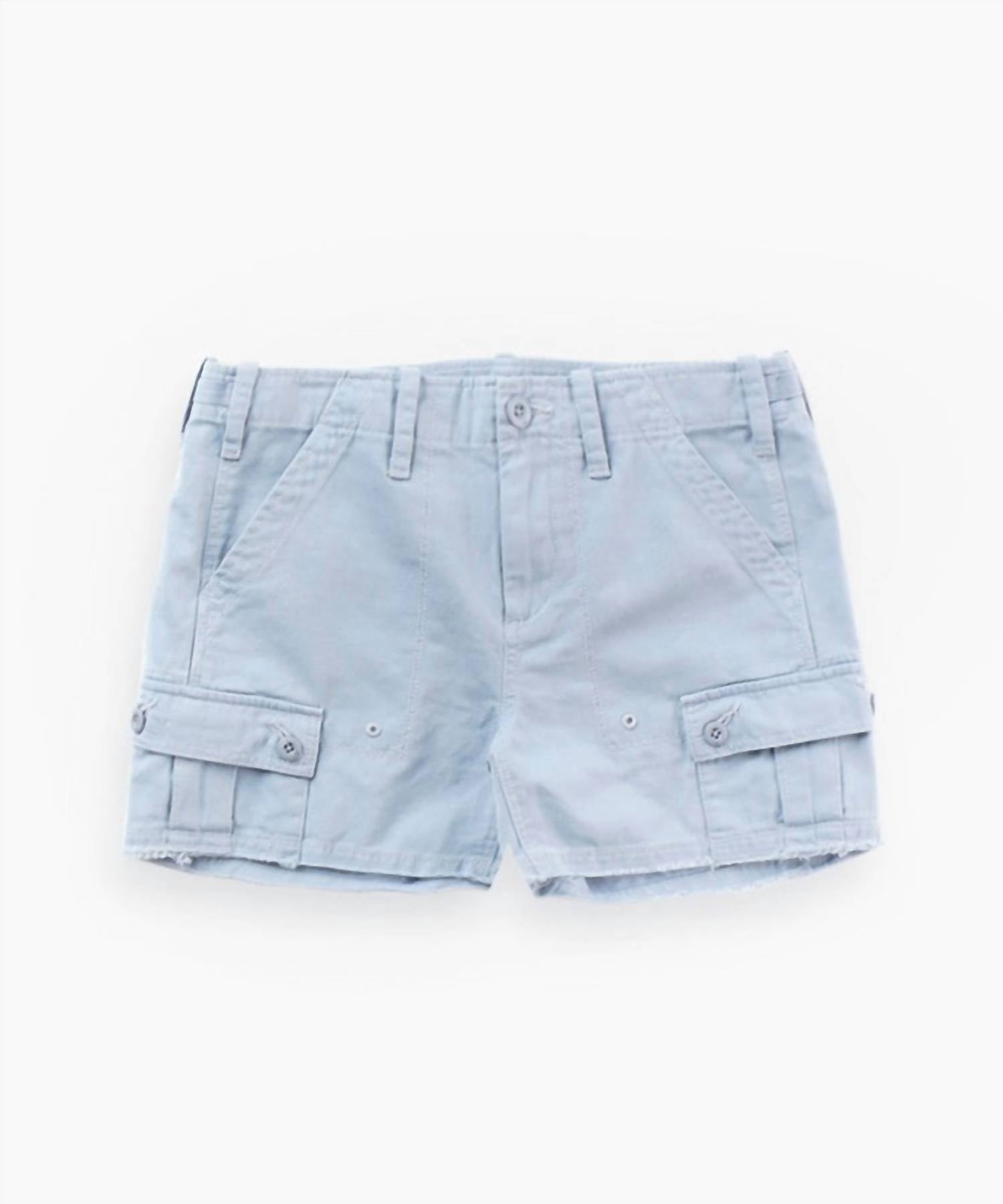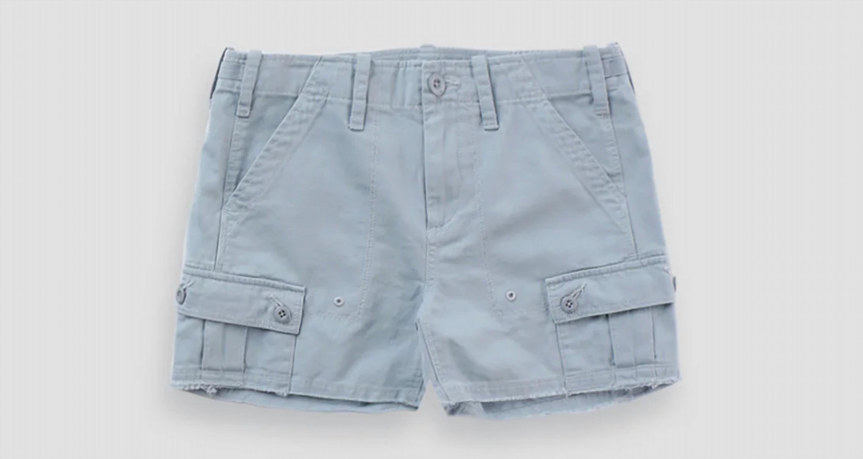 Fit to perfection, we love these high-waist shorts and you will too. These shorts feature chopped cargo pockets and a frayed hem. They have a button closure at the waistband with a zip fly and pockets. With a 4" inseam and a 22.25" leg opening (size 4), they are made from 100% cotton dobby. Machine wash cold.